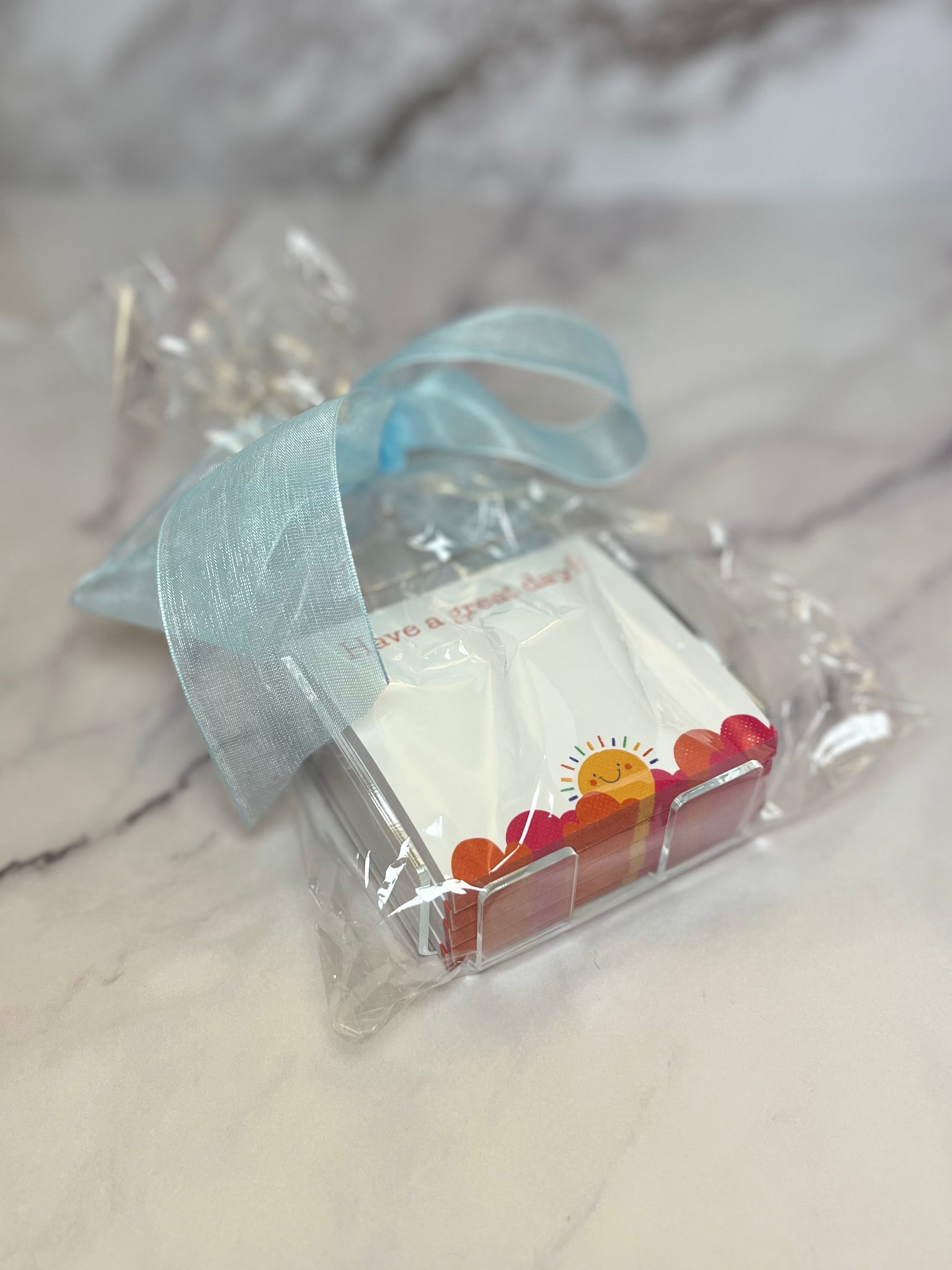 ☀️ Gift Set – 5 notepads + clear acrylic holder for a tidy, stylish display