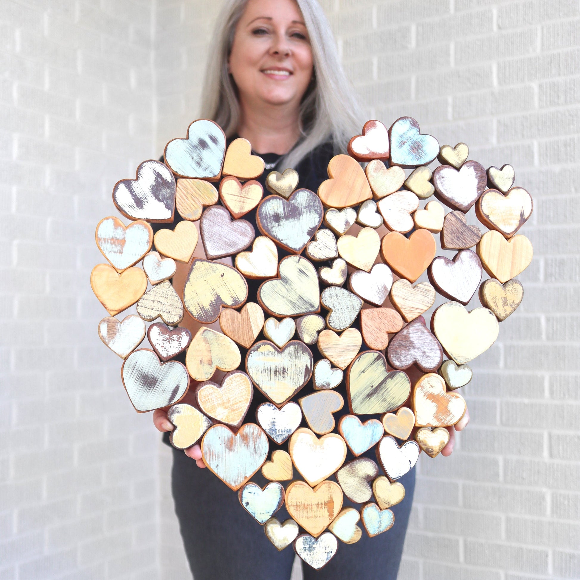 Each Heart-of-Hearts artwork is custom-made to order, so we can make yours exactly the way you want! Choose your color scheme, favorite woods, and how rustic or polished you prefer—we can build heartwork that you’ll love for years to come 🥰