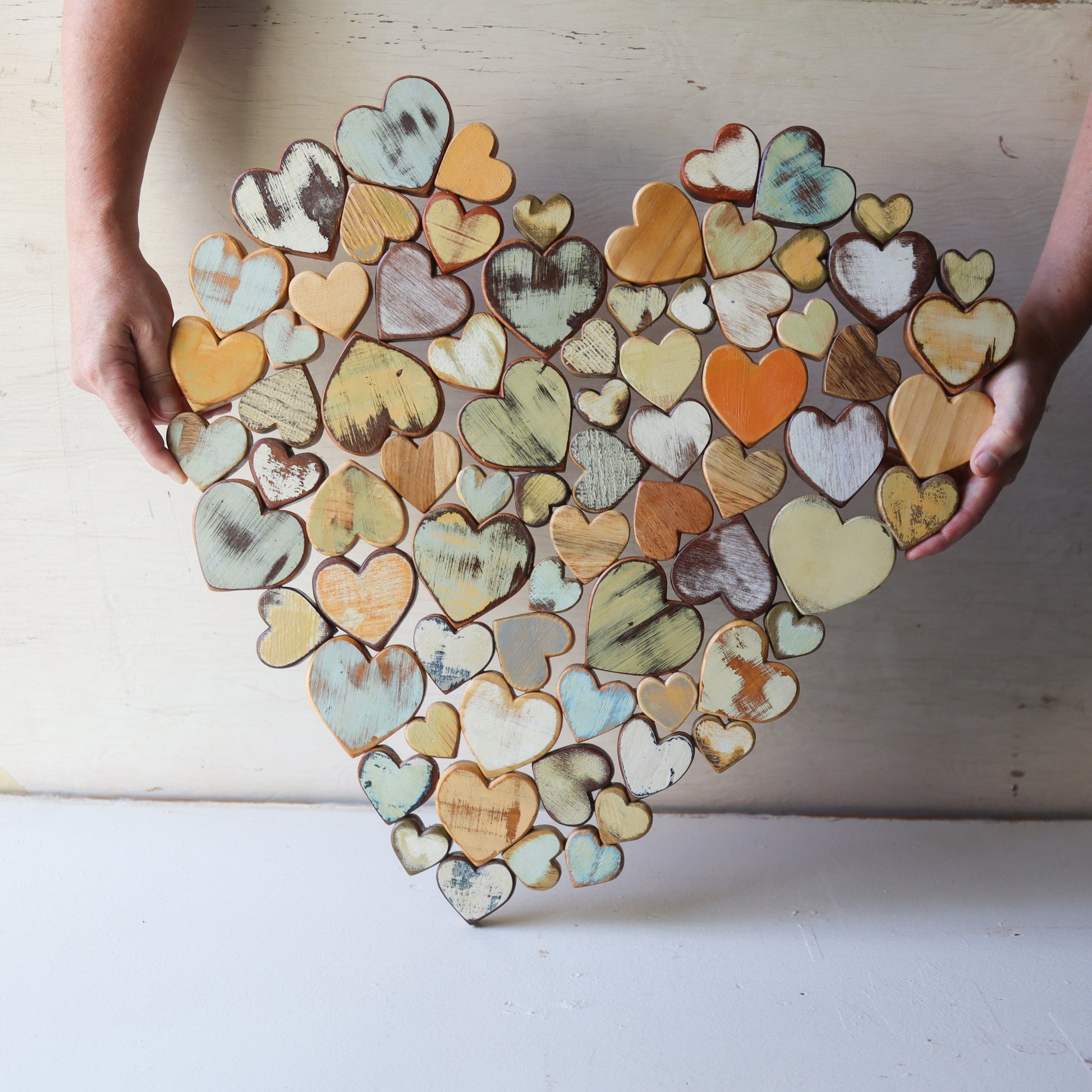 These Beautiful Heart Mosaics are a fantastic way to bring a little love into your home! These striking art pieces bring small wooden hearts together to create something bigger and tell a story of love and unity.