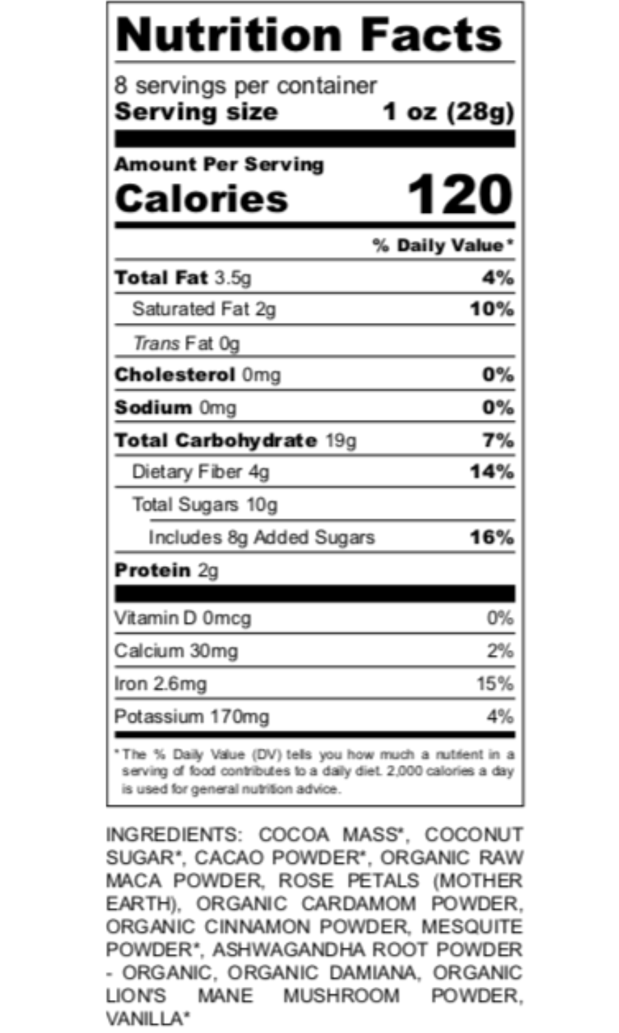 Heartswell sipping chocolate combines the rich, floral notes of cardamom, rose, and damiana with earthy and soothing ashwaganda, cinnamon, and maca. This sipping chocolate blend is best when combined with hot water or your choice of milk to extract the full flavors and benefits of the heart-opening herbs and spices of this blend.