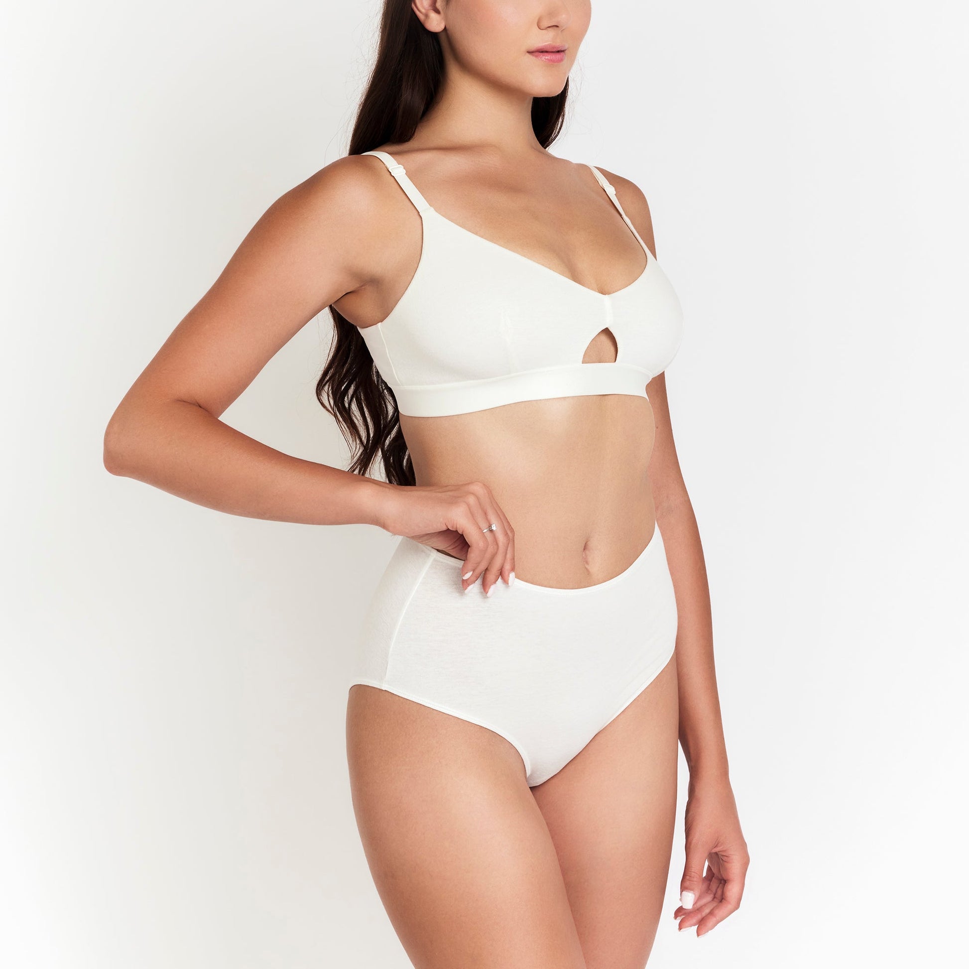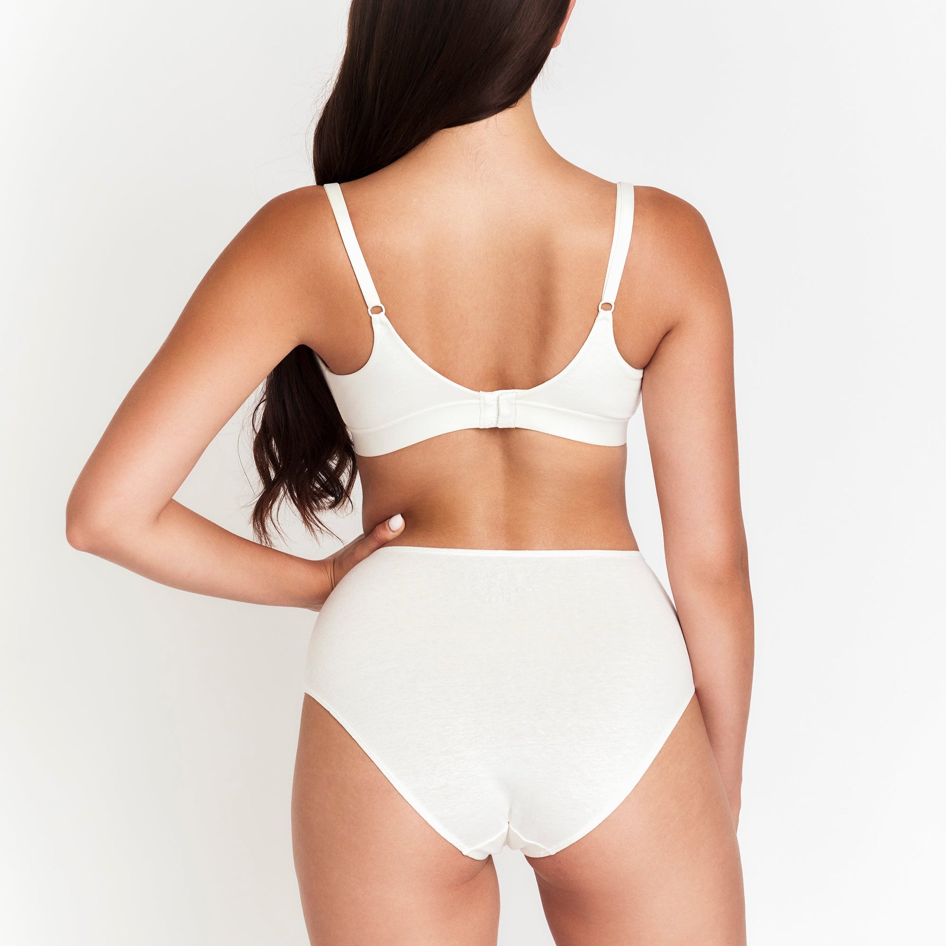 A naturally breathable high-rise brief offering cloud-soft comfort, secure coverage, and a flattering fit for everyday wear, now in Milk.