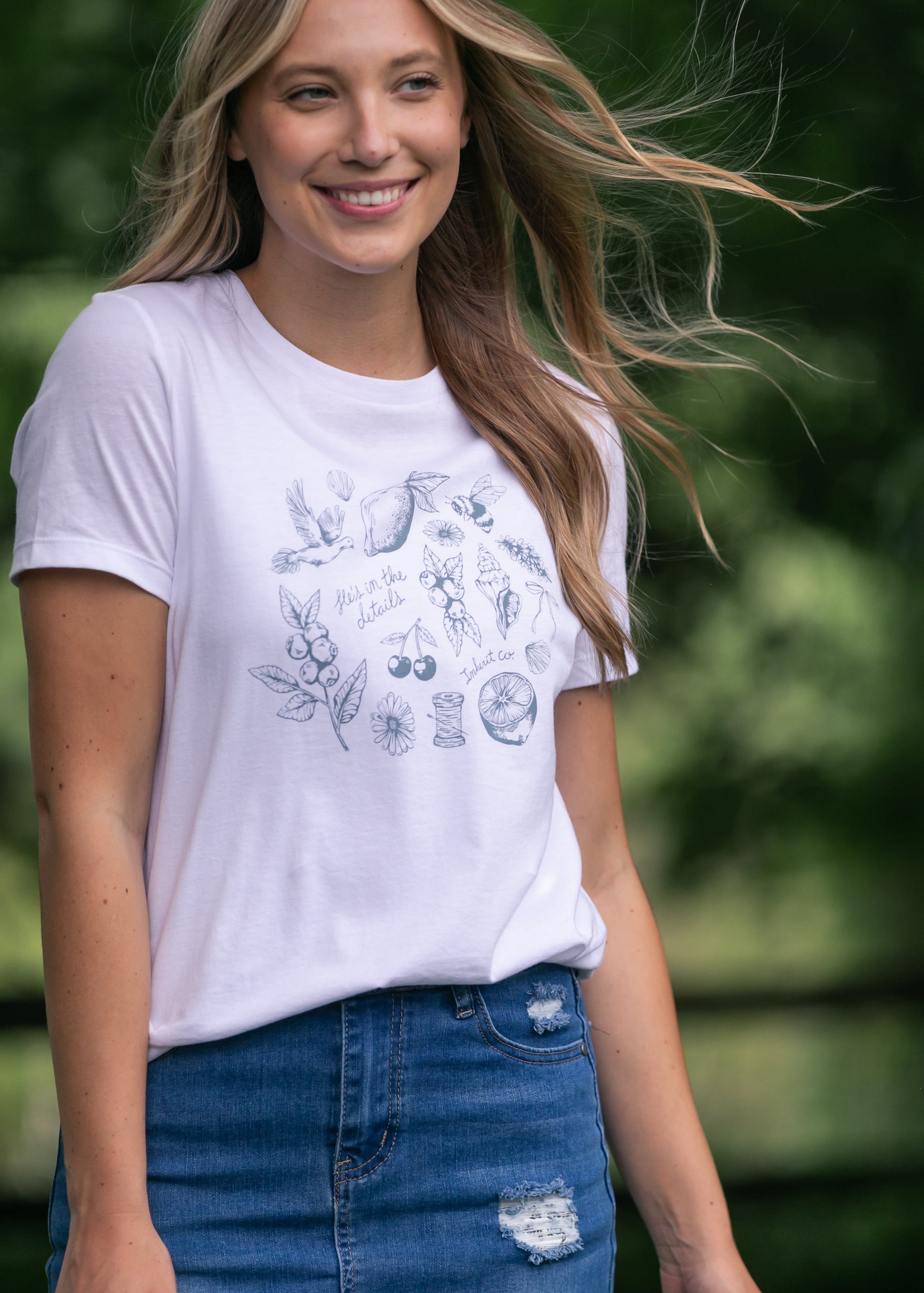 The Inherit Renew Graphic T-shirt blends everyday comfort with intentional design. Featuring a hand-drawn botanical and nature-inspired print with the phrase “Joy is in the Details,” this tee is a soft, breathable reminder to savor the little things. Its classic fit and meaningful message make it an easy layering piece and a fresh favorite for any season!