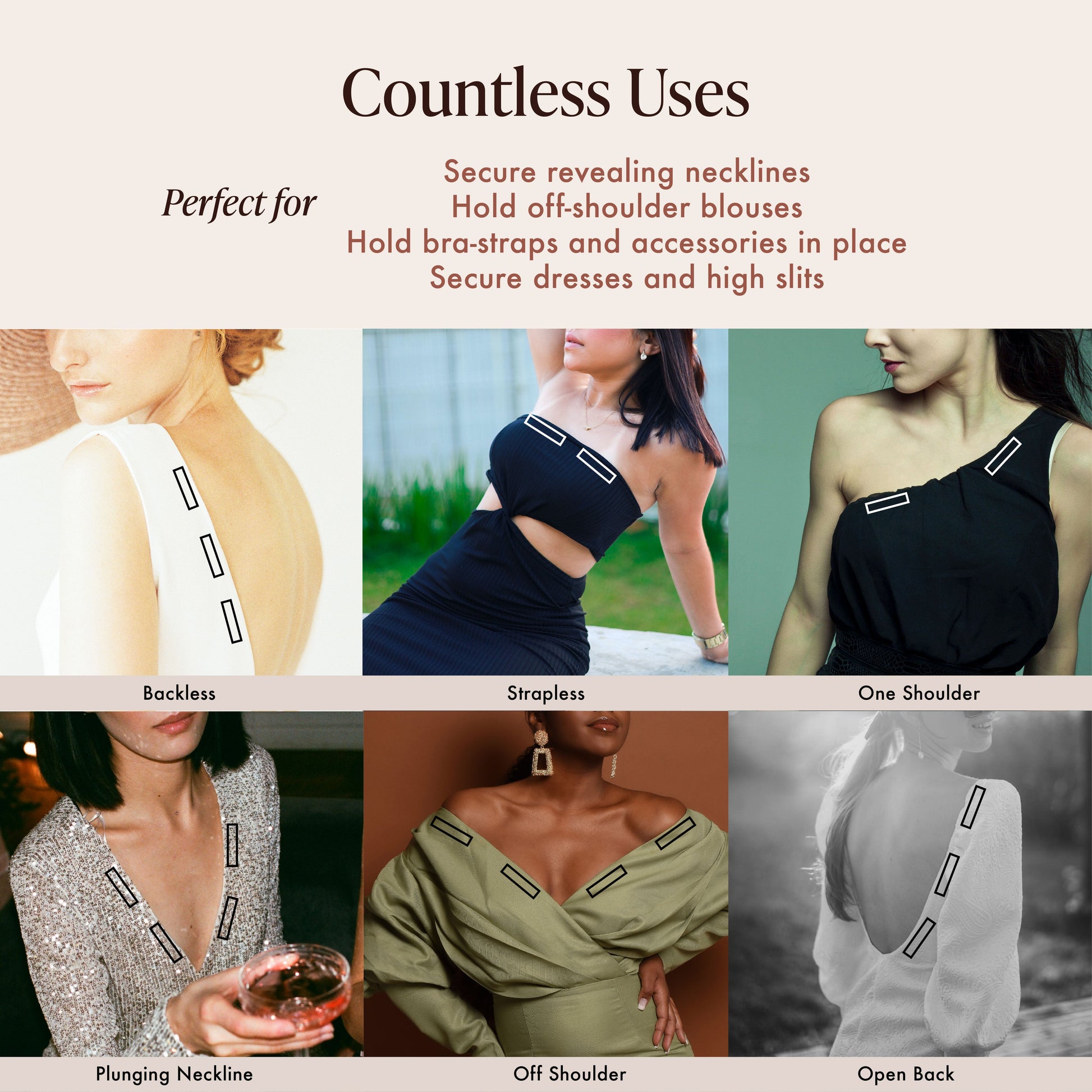 • Say Goodbye to Wardrobe Malfunctions: No more anxiety over a potential slip in that backless dress or plunging neckline. Secure every outfit with confidence.