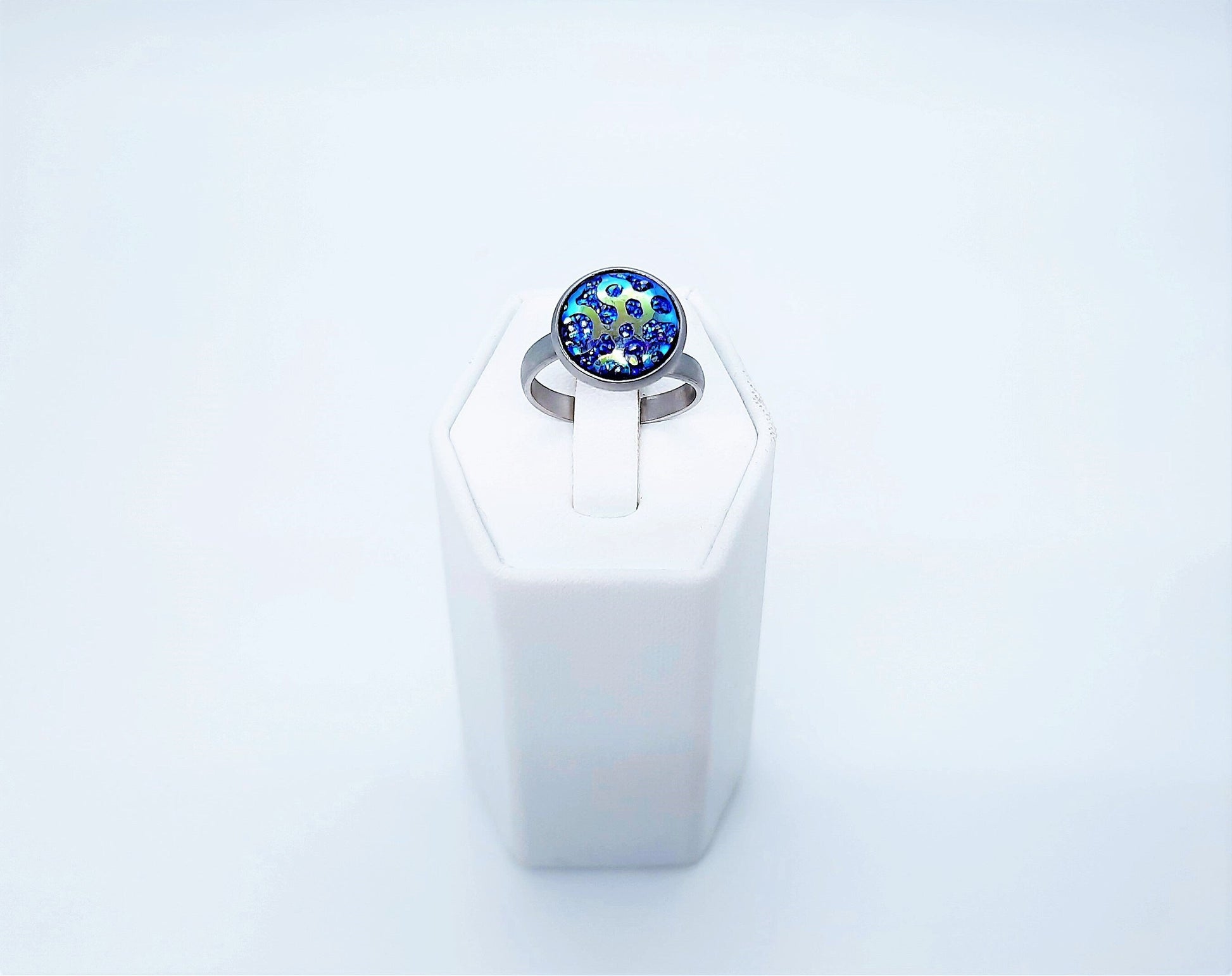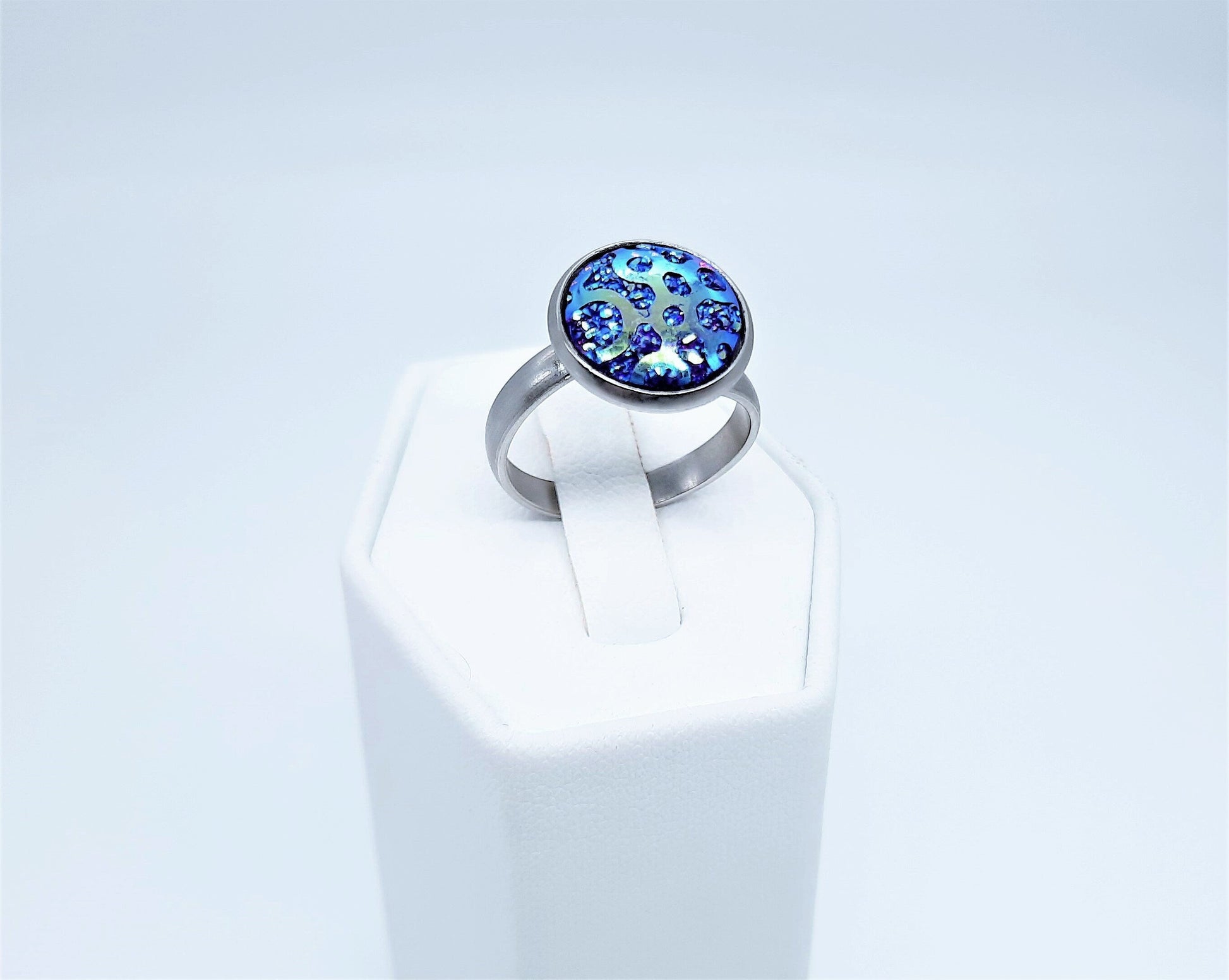 Handcrafted / Handmade Iridescent Purple Resin Ring, Hypoallergenic Silver Stainless Steel, Adjustable Band.