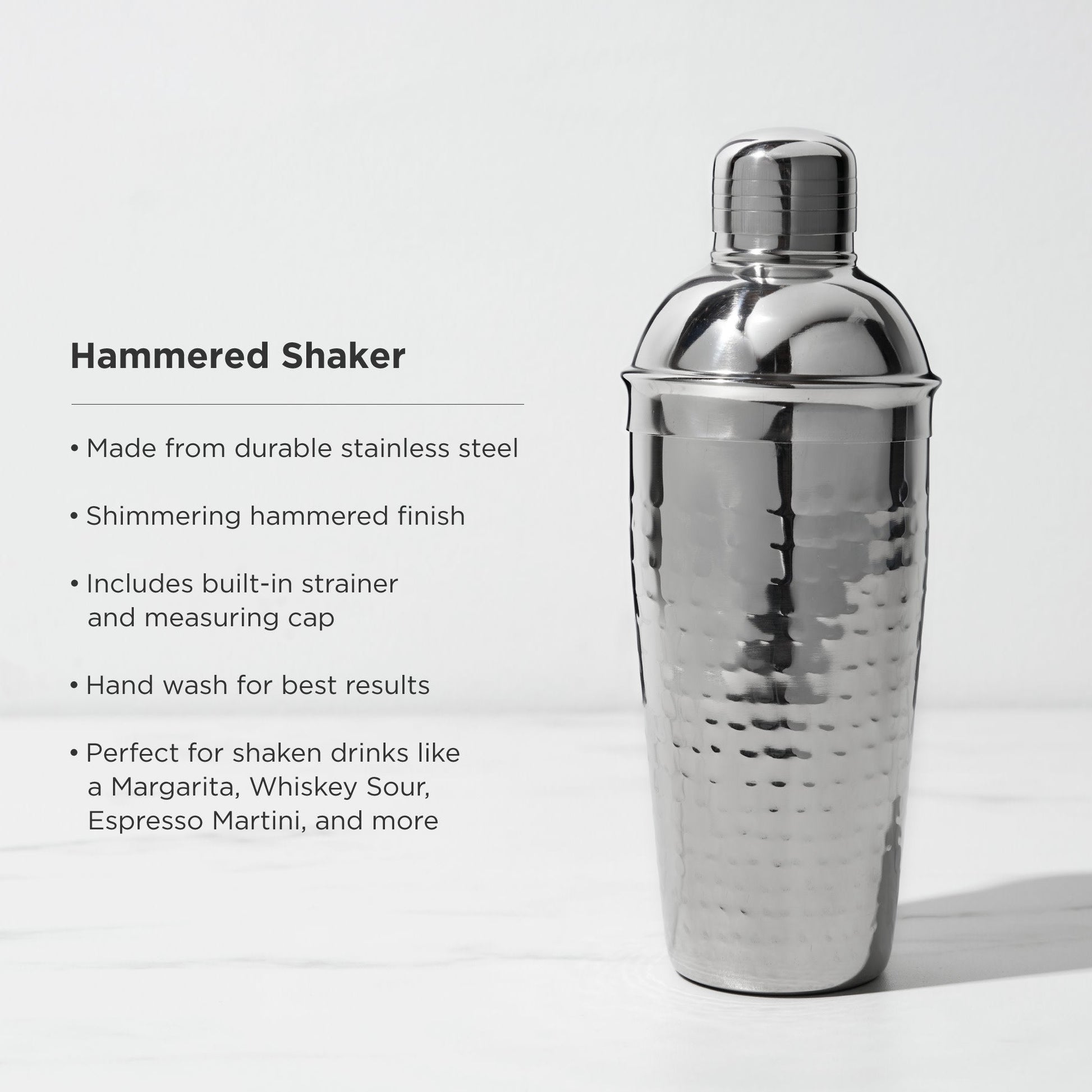 If you're going to shake up noticeable cocktails, do it in eye-catching barware. Our chrome-bright cobbler shaker incorporates the classic measured cap and strainer, with sides rent by powerful blows for a shimmering silver finish.