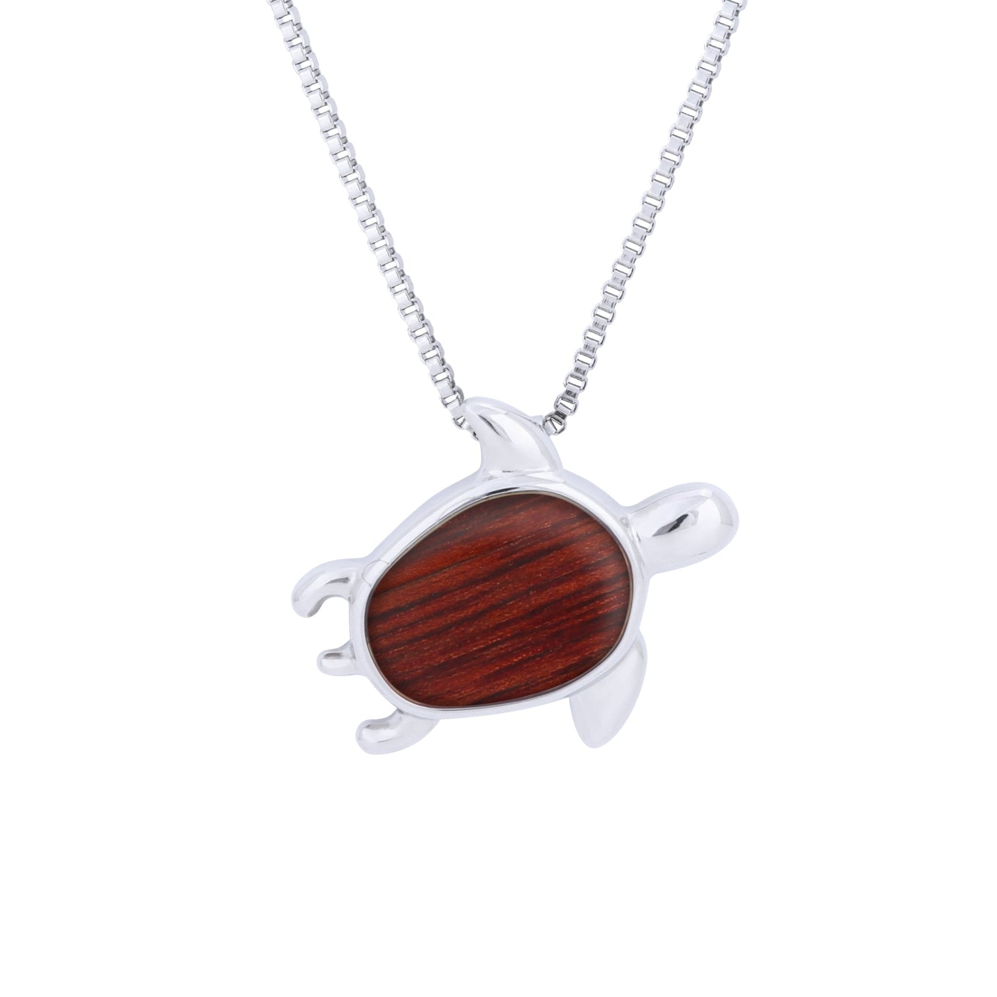 Stainless steel turtle pendant inlaid with Australian Jarrah wood.