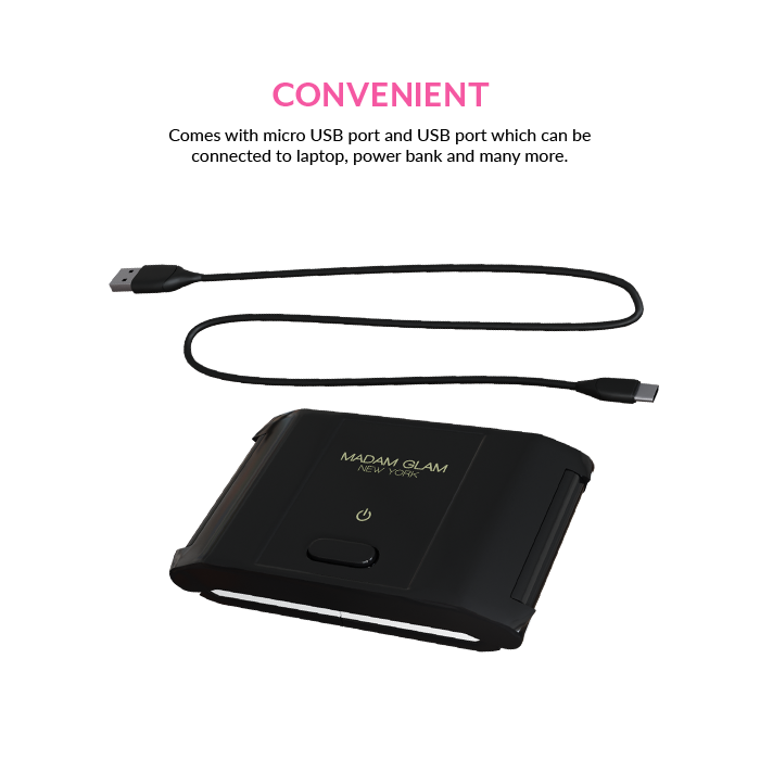 PORTABLE: Comes with micro USB port and USB port which can be connected to laptop, power bank and many more. Makes it possible to do your manicure anytime and anywhere.
