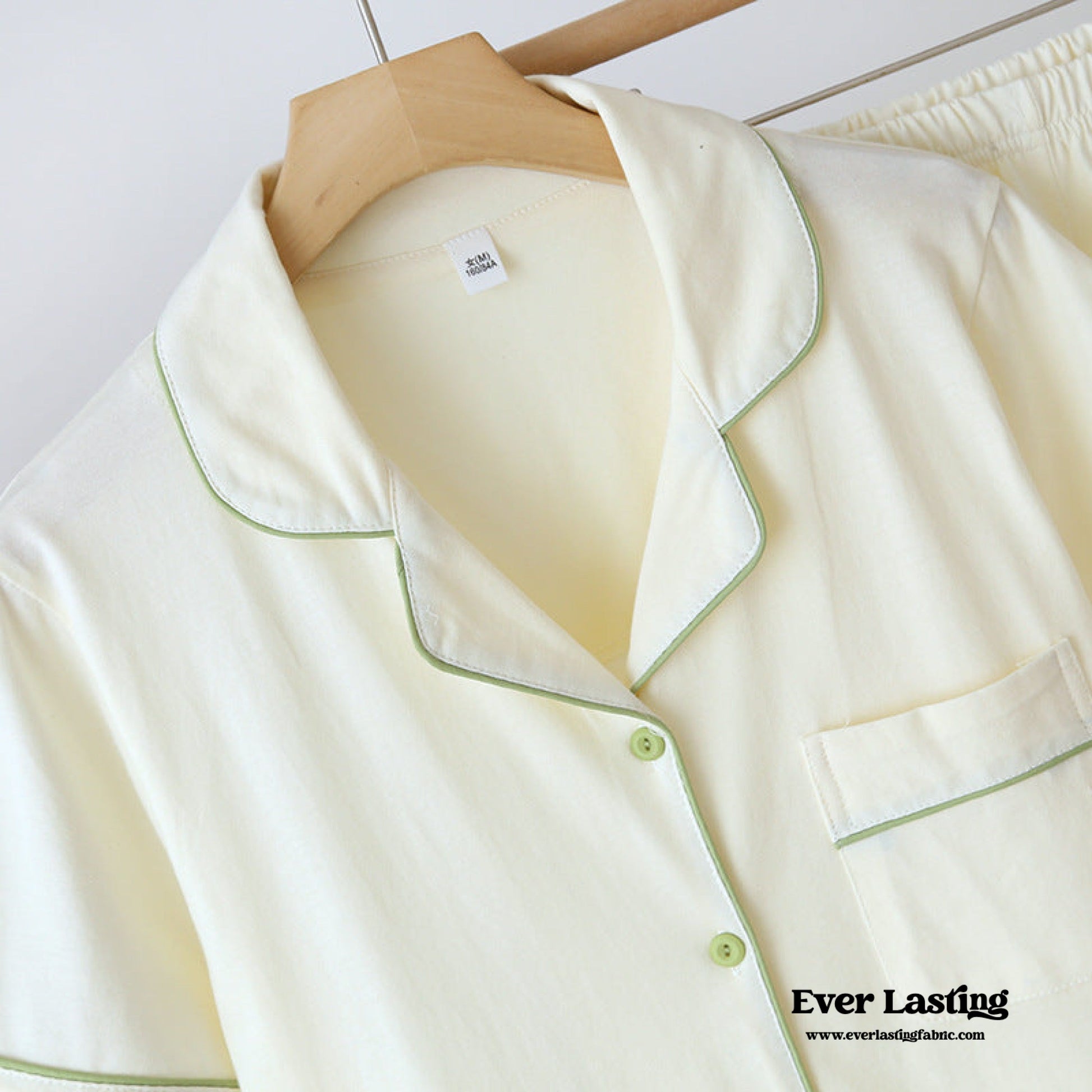 Key Lime Cotton Short Sleeves and Shorts Pajama Set / Yellow