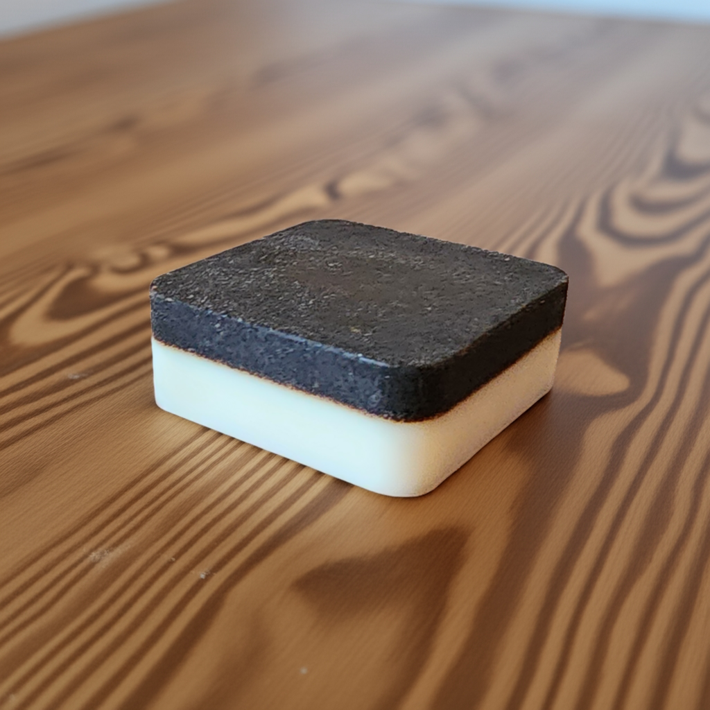 This dual-layer soap combines the gentle exfoliation of upcycled espresso grounds