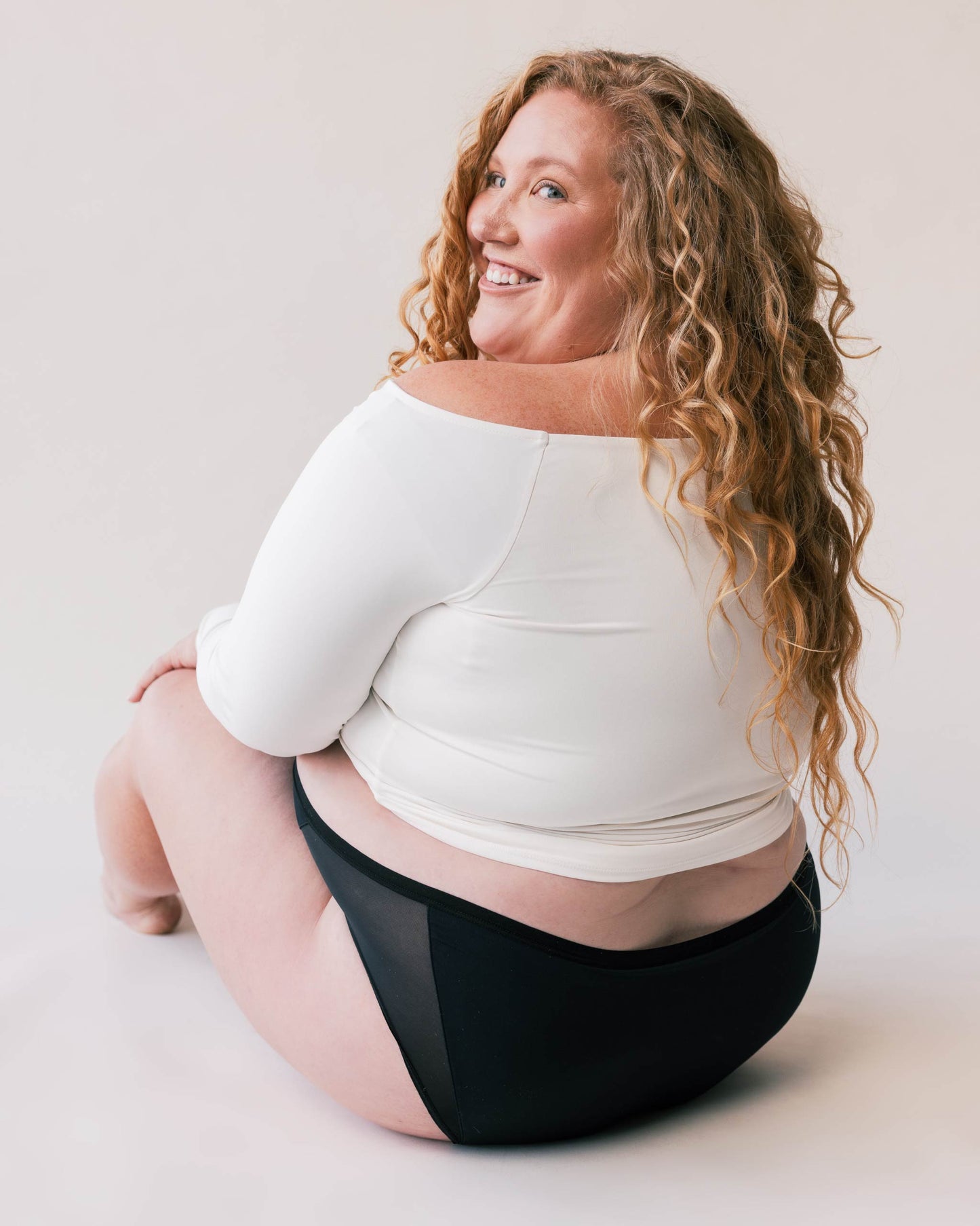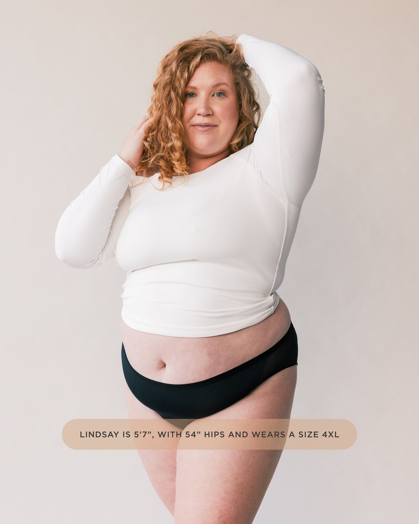 This low-rise bikini style features less coverage for a made-to-flatter fit. (Not your 2000s low-rise—just a slightly lower profile for a comfortable fit without the flashback.) Now with a heavy-absorbency gusset that locks in leaks. Silky smooth fabric and strokes of modern mesh combine with thin, flat seams for no-show, any-outfit comfort. Best for your heavy days, overnight, postpartum wear, or bladder leaks.
