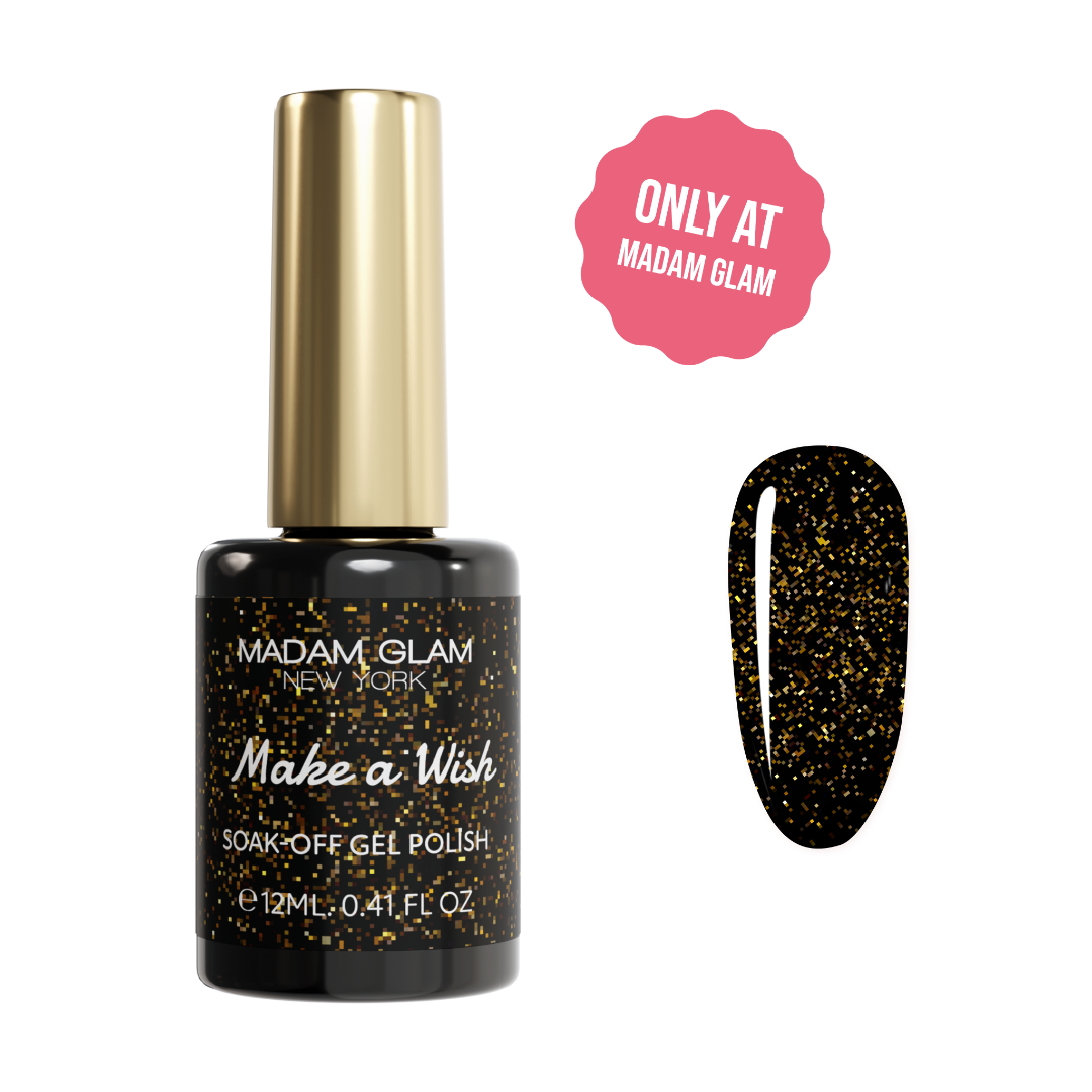 Grant your nails a touch of midnight magic. This bewitching glitter black gel polish captures the allure of starlit skies, making each stroke a wish fulfilled.