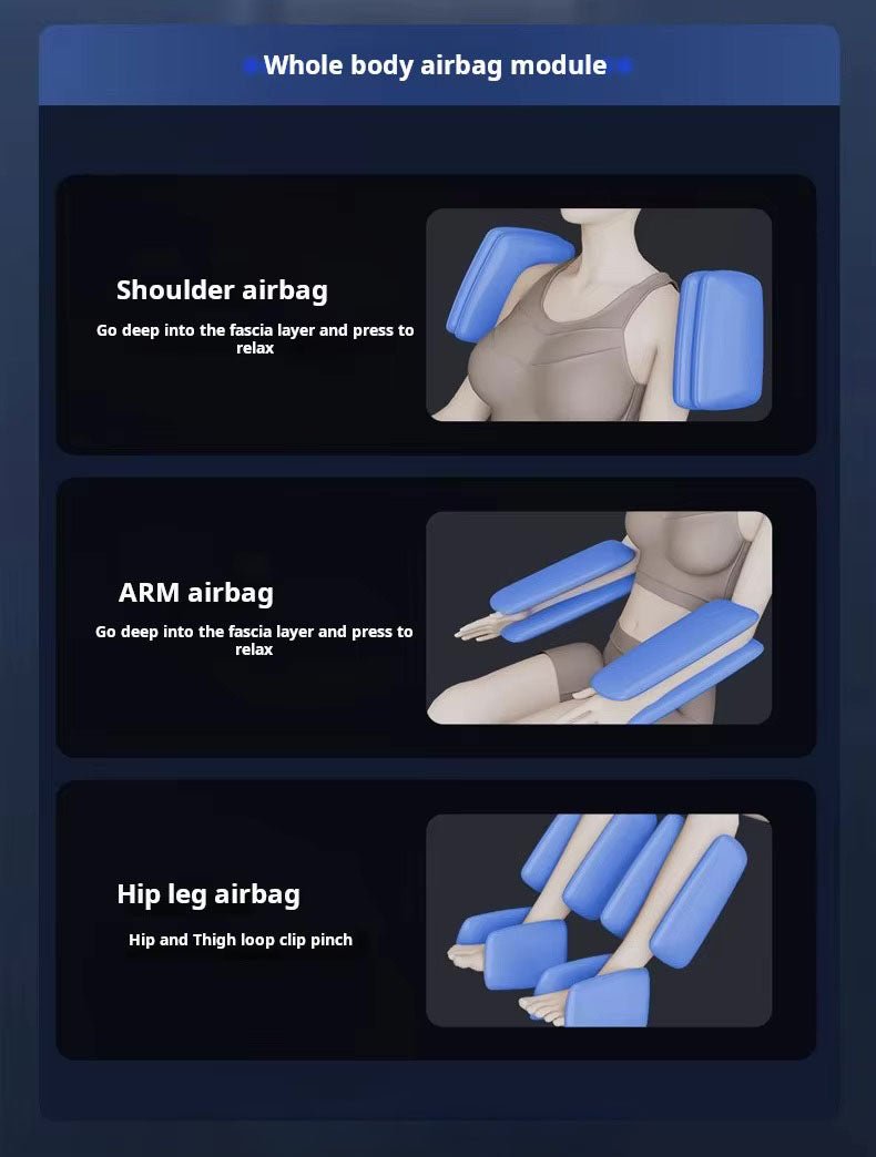 Wrap-around airbags knead shoulders, arms, waist, hips, and legs.