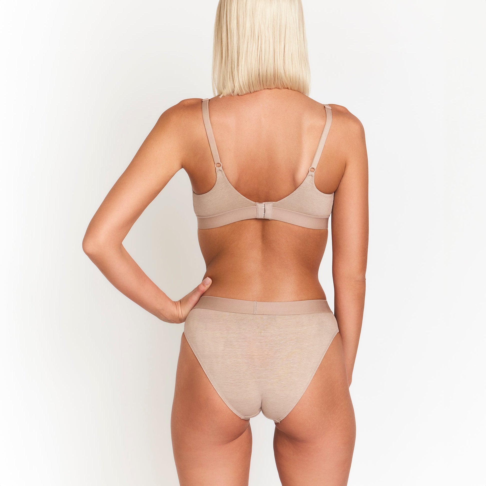 A naturally breathable mid-rise brief designed for soft everyday comfort and gentle coverage, now in Mocha.