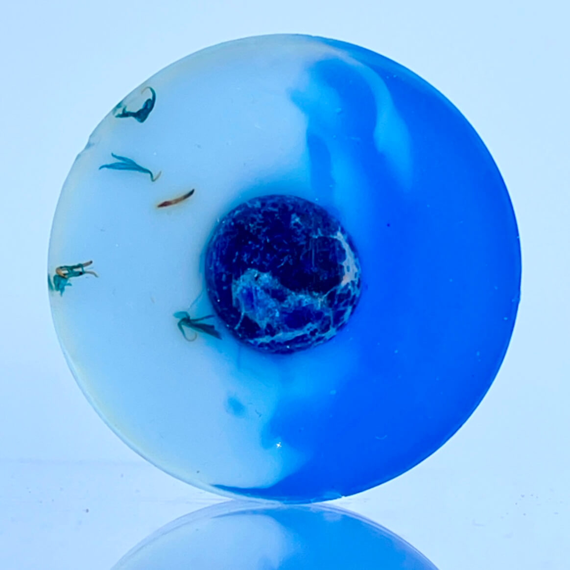 This bar is infused with a Sodalite crystal. Sodalite encourages rational thought, objectivity, truth, and intuition, along with the verbalization of feelings. This mouth watering bar brings emotional balance and calms panic attacks. It enhances self-esteem, self-acceptance, and self-trust. Sodalite is a stone of mental and intuitive awareness. It enhances creativity, analysis, insight, and mindfulness. Sodalite intensifies the need for truth and promotes to see clarity. Stimulates living according to your own beliefs and values and thereby encouraging you to live a more authentic life.