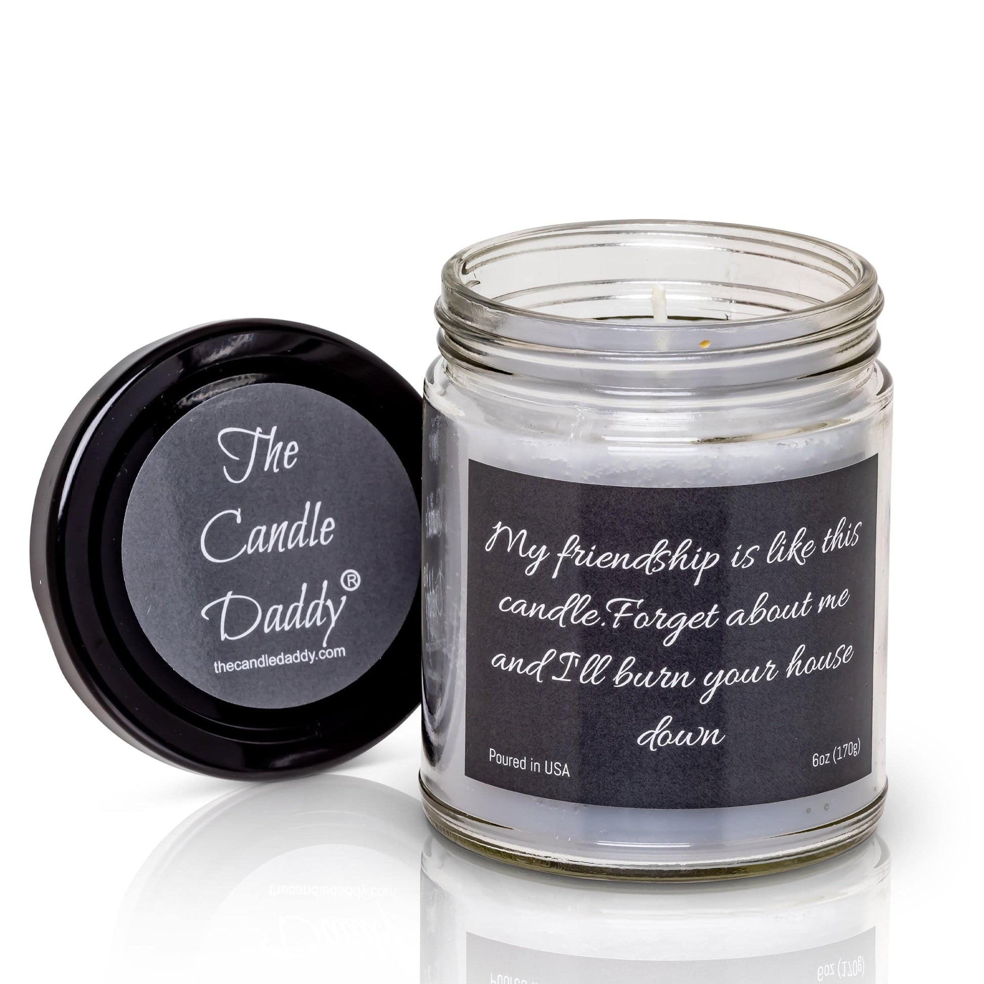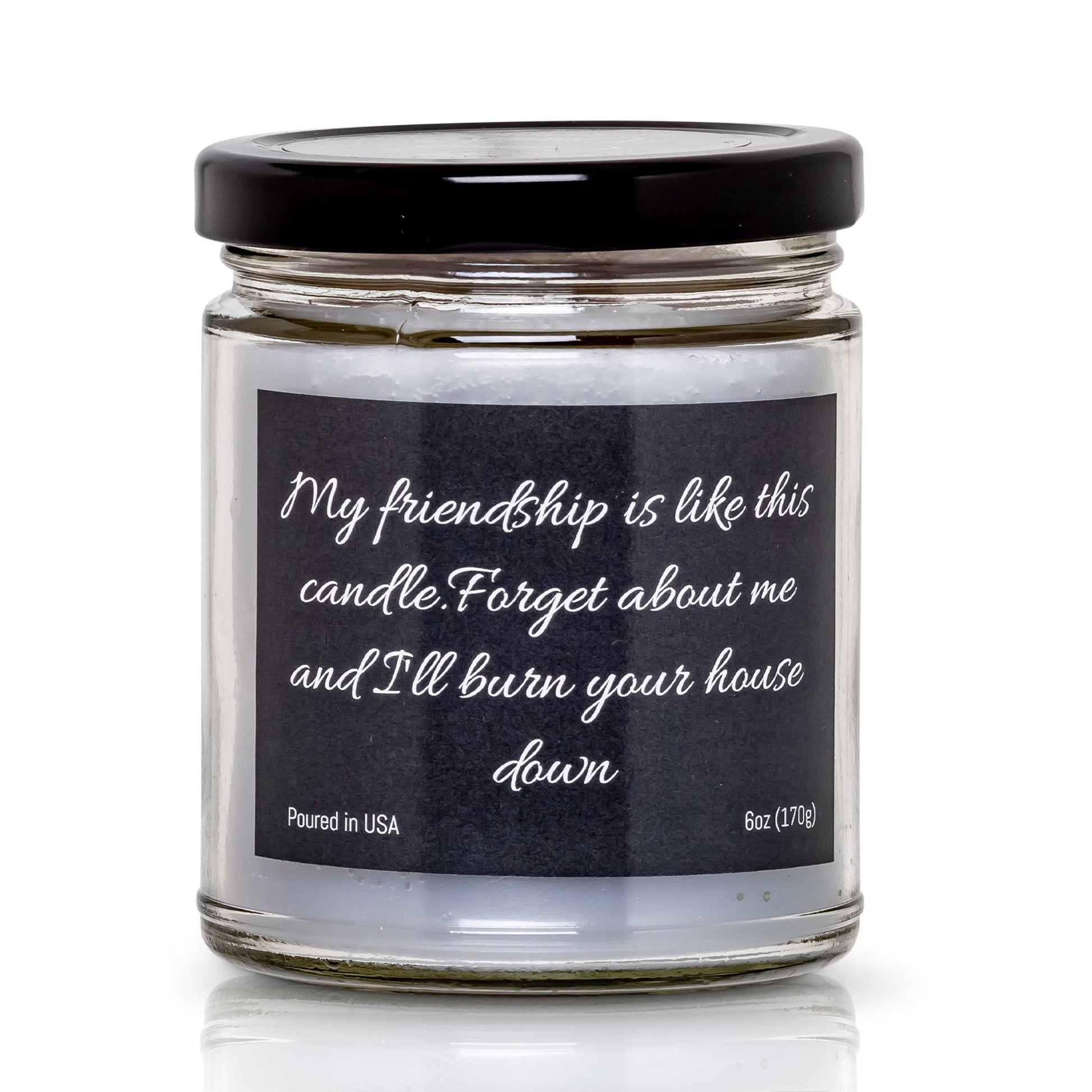 My friendship is like this candle. Forget about me and I'll burn your house down- 6 oz- 40 hour burn time - Apple Maple Bourbon Scent