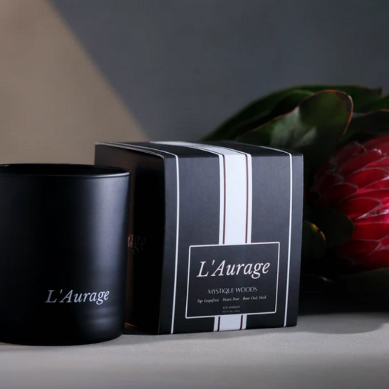 At L’Aurage our candles are made with an all-natural soy-coconut blend and infused with high quality fragrance. Each eleven-ounce jar is filled with 8 ounces of luxury fragrance infused wax and natural cotton/paper wick that ensures a slow, steady, clean and consistent burn that maximizes the impact of the fragrance’s strength and beauty.