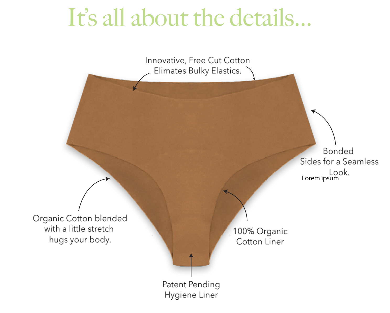 Our Organic Cotton High-Waisted Hipster No Show Underwear sits comfortably at your natural waist and provides complete back coverage without excess! Enjoy a smooth silhouette in our seamless cotton panties that offer no panty lines in standard and plus panty sizes! Our patented 100% Organic Cotton Underwear Gusset ensures that no chemicals are near your nethers- because your lady parts deserve the best!