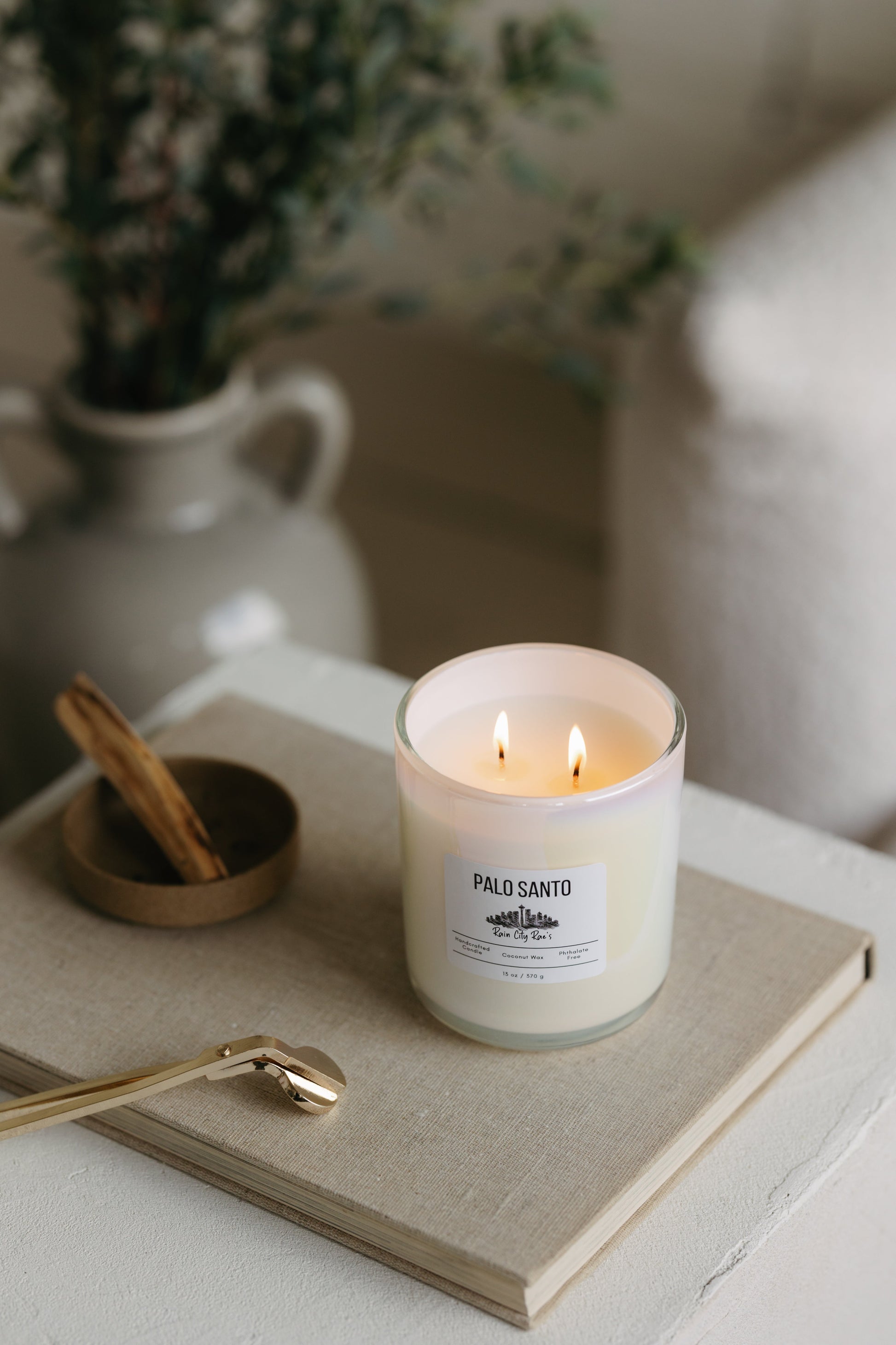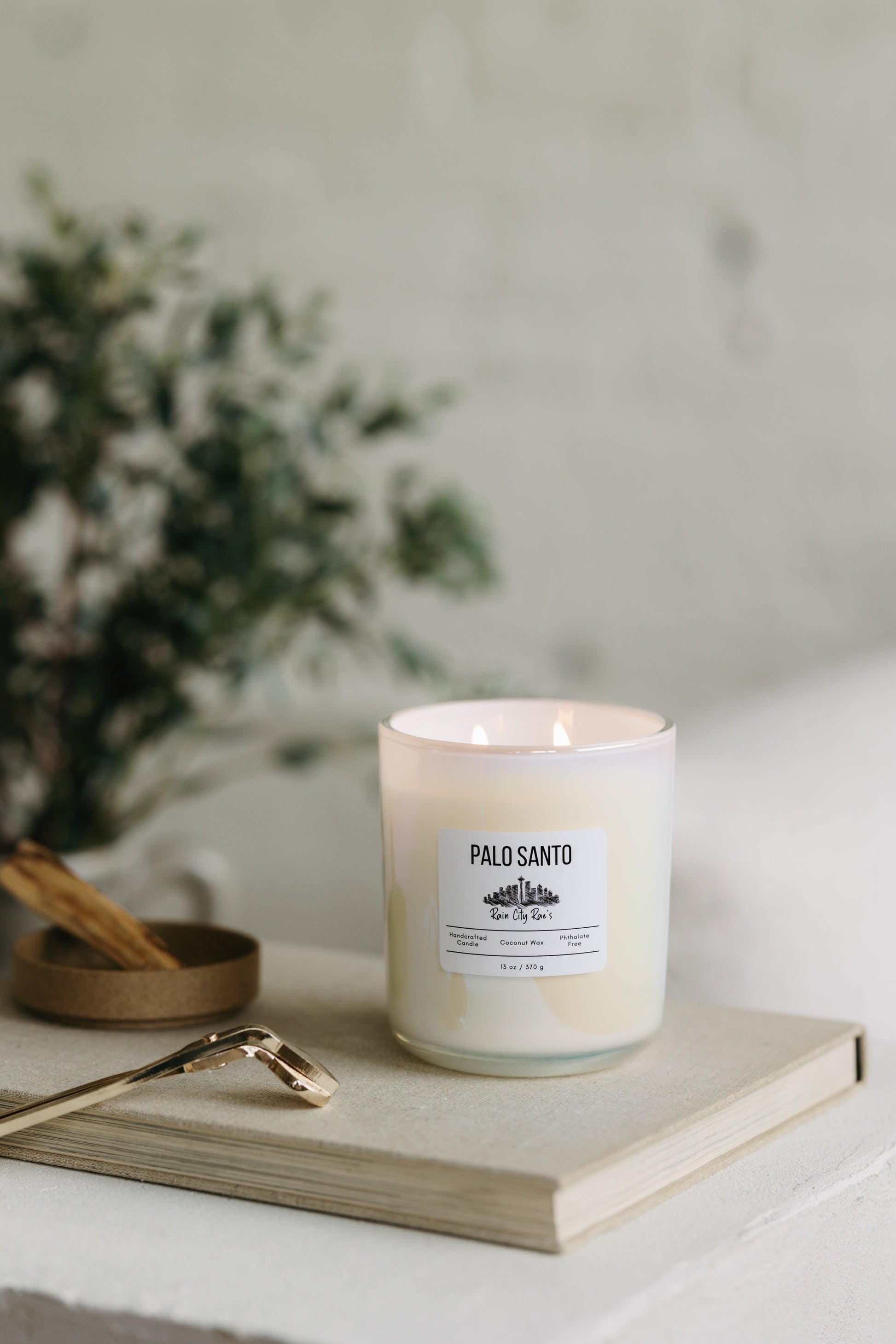 Palo Santo 13 oz Luxury Candle | Iridescent White