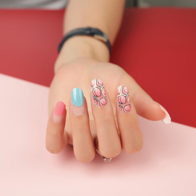 Real Nail Polish Stickers! Our real nail polish stickers come in a 16 nail set. Apply the real nail polish stickers and file the excess. Each set lasts about 10-14 days.