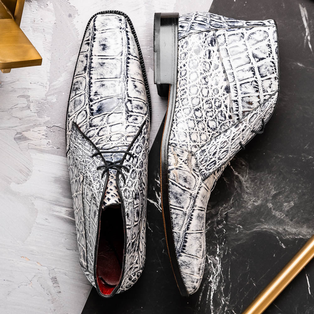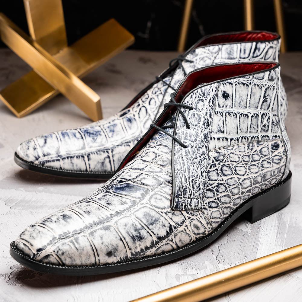 The PIETRO, rugged genuine alligator and leather lace-up boots. With their robust design and lace-up closure, they're ready to take on any challenge.