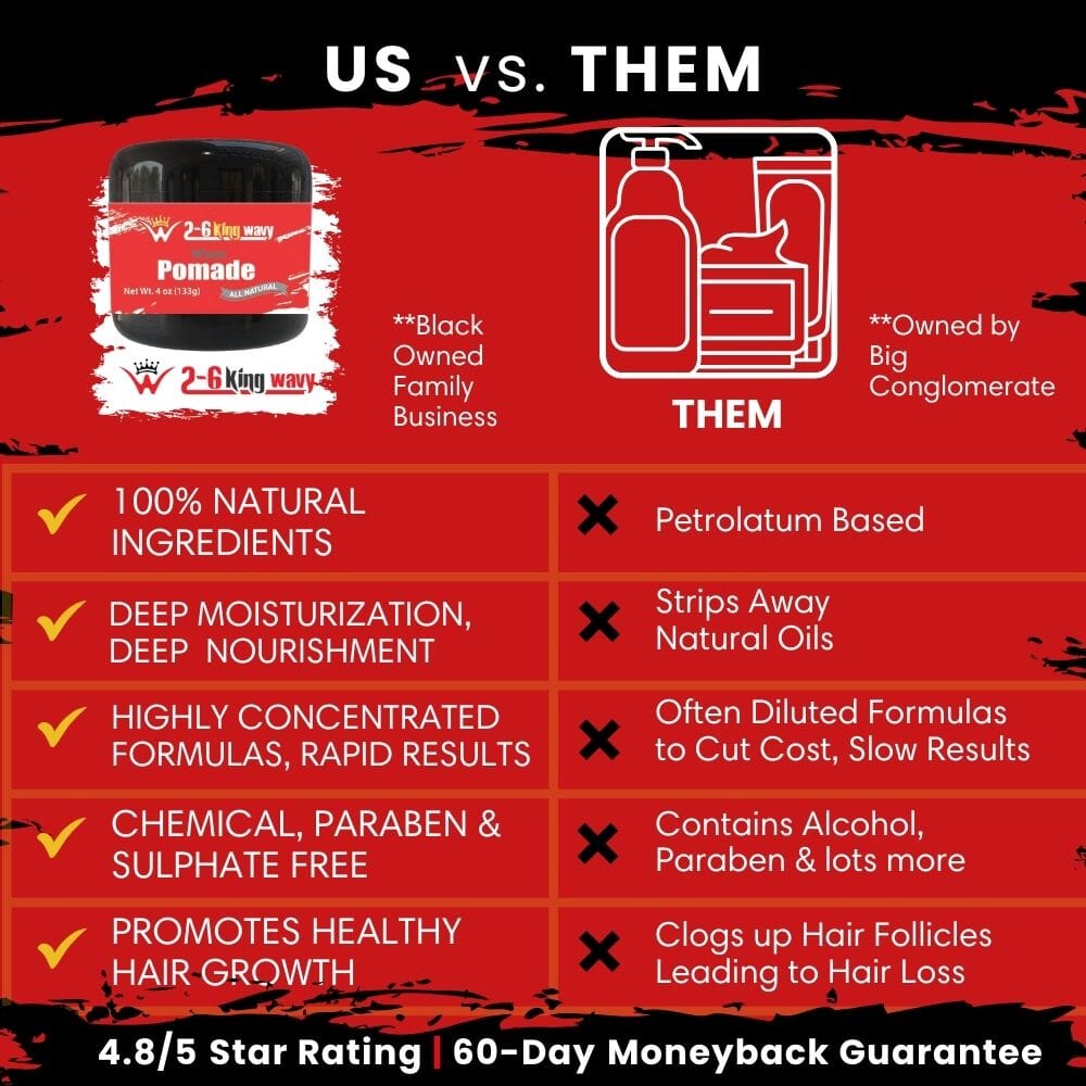 It's time to elevate your hair care game with the 2-6 King Wavy Pomade! Our cutting-edge, all-natural formula is meticulously crafted to revolutionize your hair care experience, leaving you with irresistibly strong, shiny, and manageable tresses.