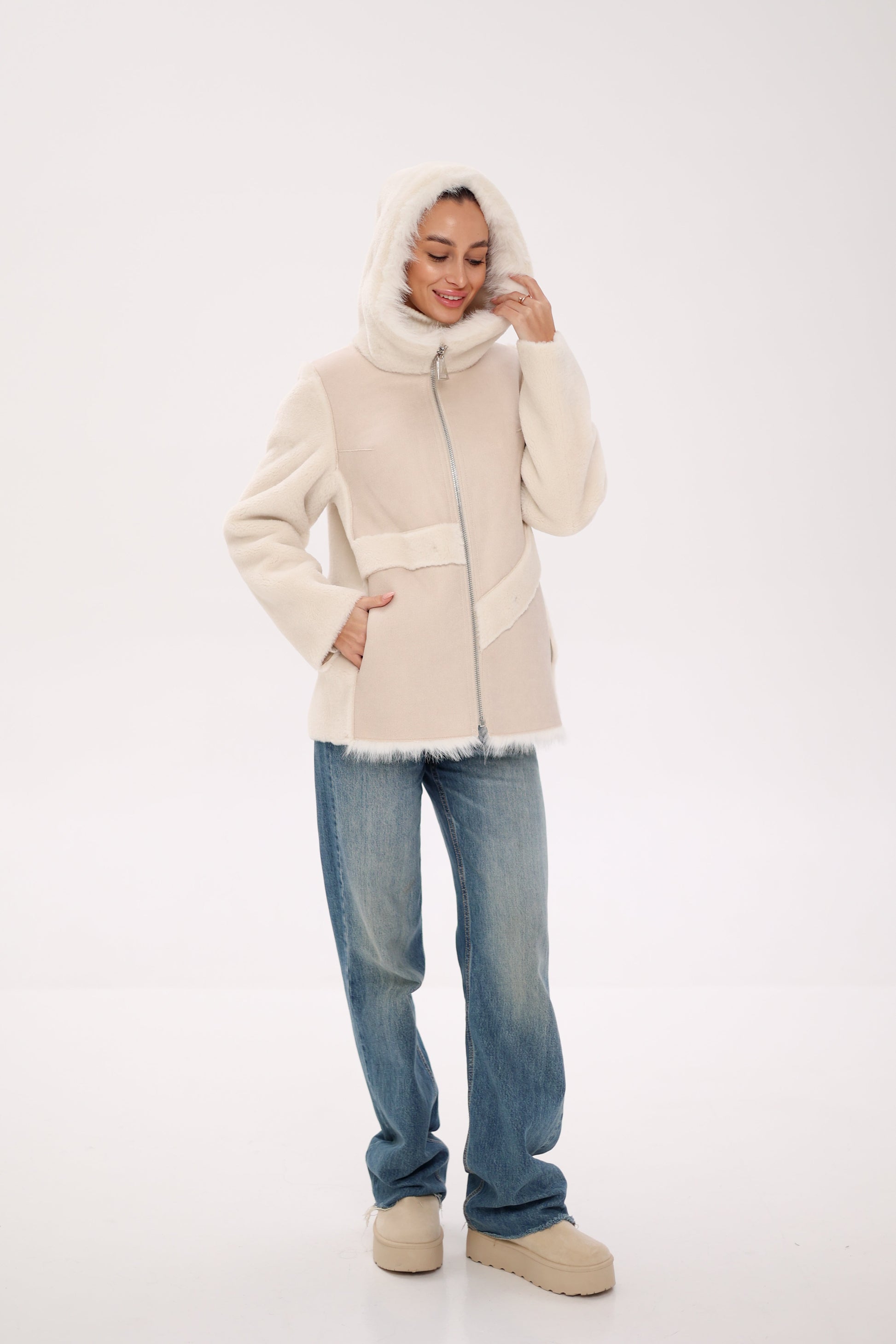 This hip-length reversible jacket combines eco-suede and wool blend, offering two looks in one. The eco-suede provides a sleek soft-to-the-touch finish, while the cozy layer of wool blend adds warmth and texture. With its versatile design, this jacket is perfect for transitioning between casual and sophisticated styles, making it a practical yet luxurious addition to any wardrobe.