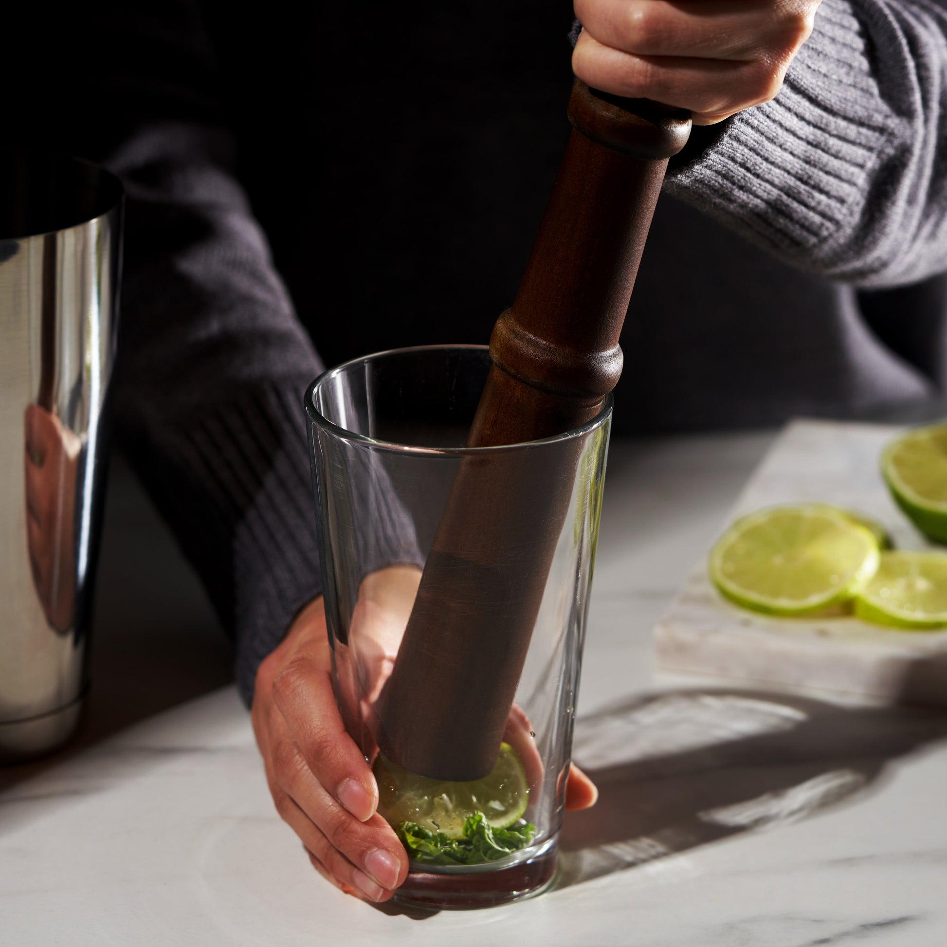 A good muddler needs to evenly crush fresh herbs and fruit to release flavor.