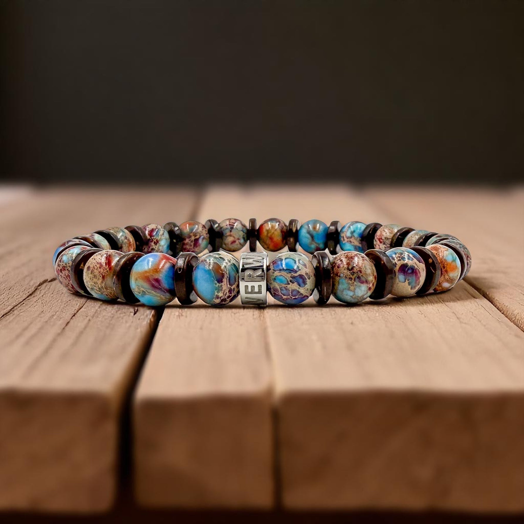 Light it up with Americana Spark—a bracelet that’s all about bold pride and grounded style. Featuring vibrant red, white, and blue tones from Patriot Jasper beads, paired with warm brown coconut wood, this piece captures the spirit of adventure and the grit of American roots. Finished with a polished stainless steel spacer engraved with the EVERWOOD name, it’s a clean and confident nod to freedom and individuality. From backyard barbecues to everyday grind, Americana Spark brings color, character, and timeless edge to your wrist.