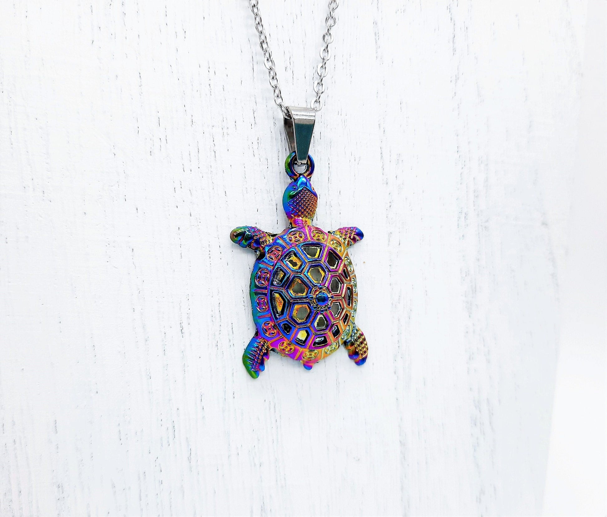 Rainbow Chromium Turtle Necklace