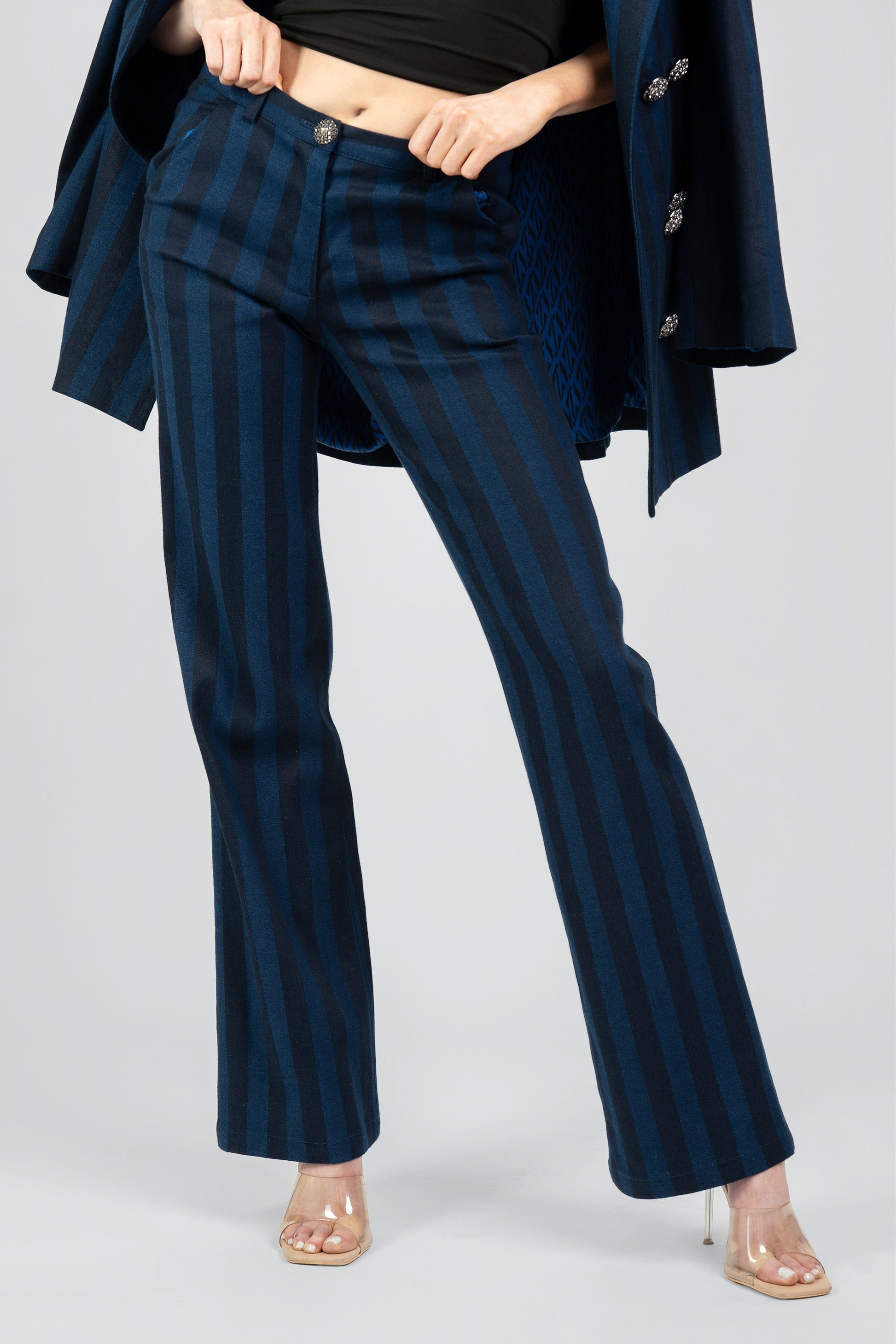 The Ramona Striped Pants redefine modern sophistication with their sleek, tailored design. Crafted from premium fabric, these pants feature a timeless silhouette that transitions seamlessly from day to night. The muted stripe pattern adds a touch of subtle class. Fresh from their NYFW debut, the Ramona Striped Pants are perfect for those who value effortless style with a contemporary twist. Pair them with a crisp blouse or The Ramona Striped Long Blazer to complete the look.