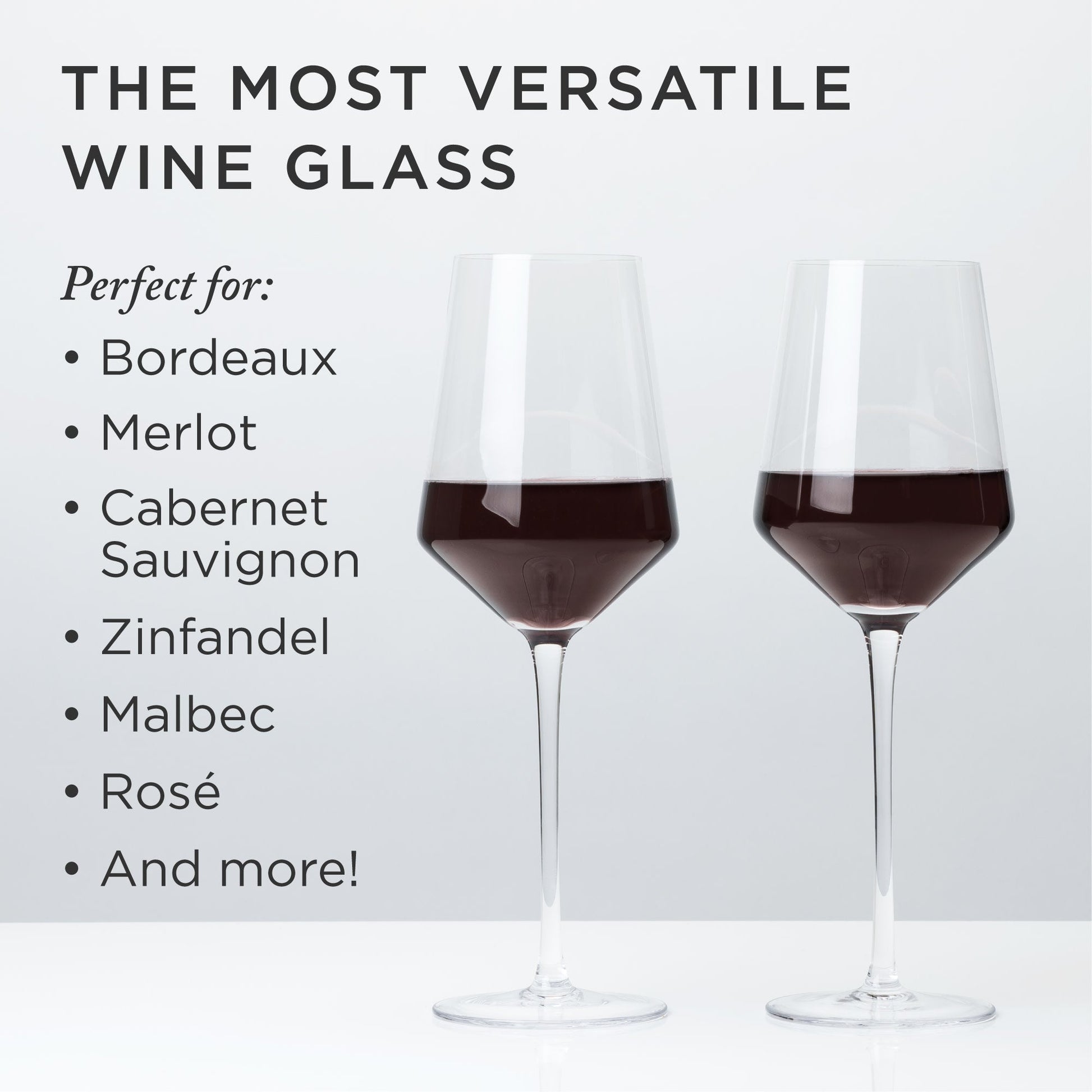 The classic Bordeaux wine glass and decanter combo, updated with exaggerated angles. It's familiar, with a little edge.