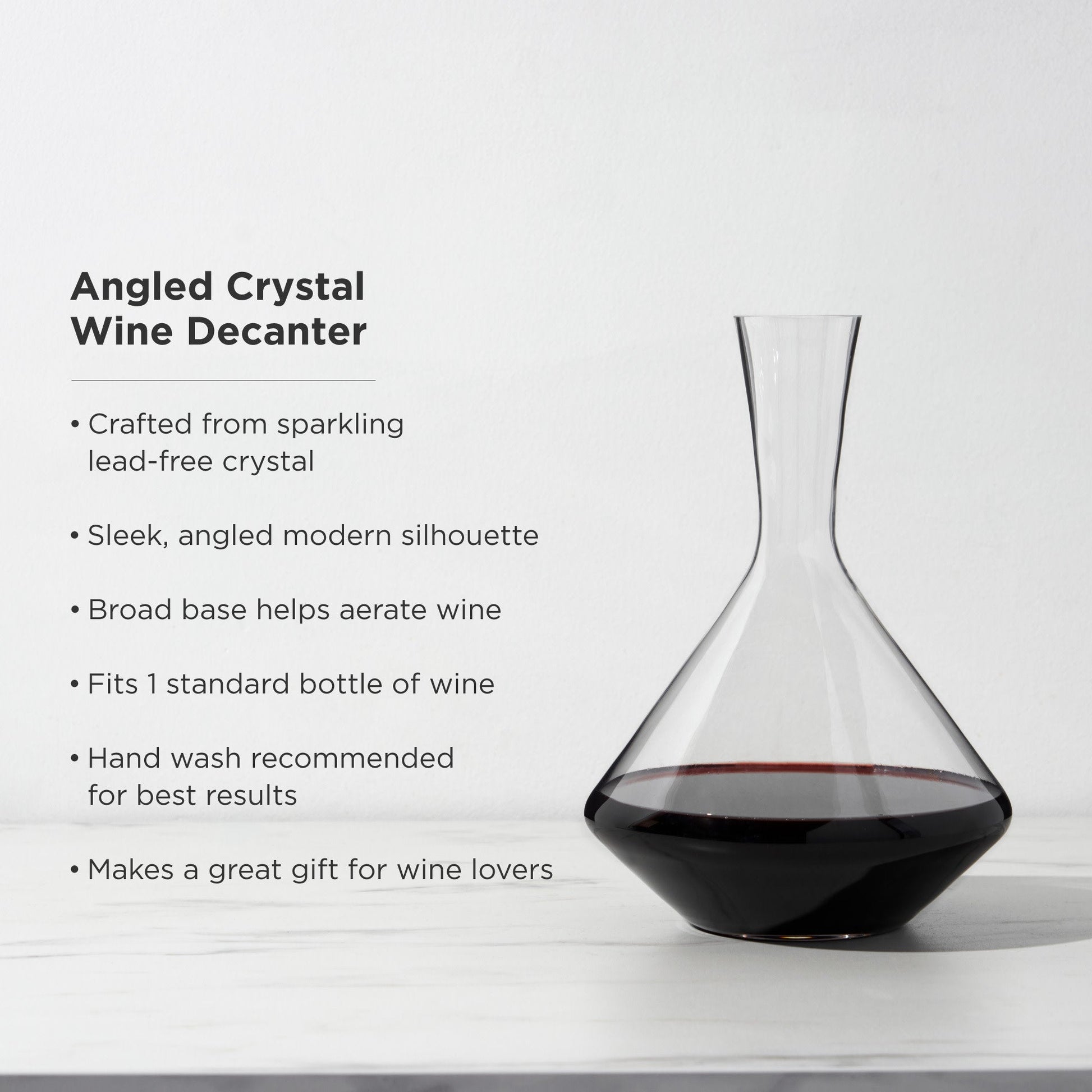 In this radiant, classically styled wine decanter, angular crystal creates a broad base for optimal aeration of one standard bottle, before slanting inward to form a slim pour spout that sends your vintage arcing smoothly into your glass.