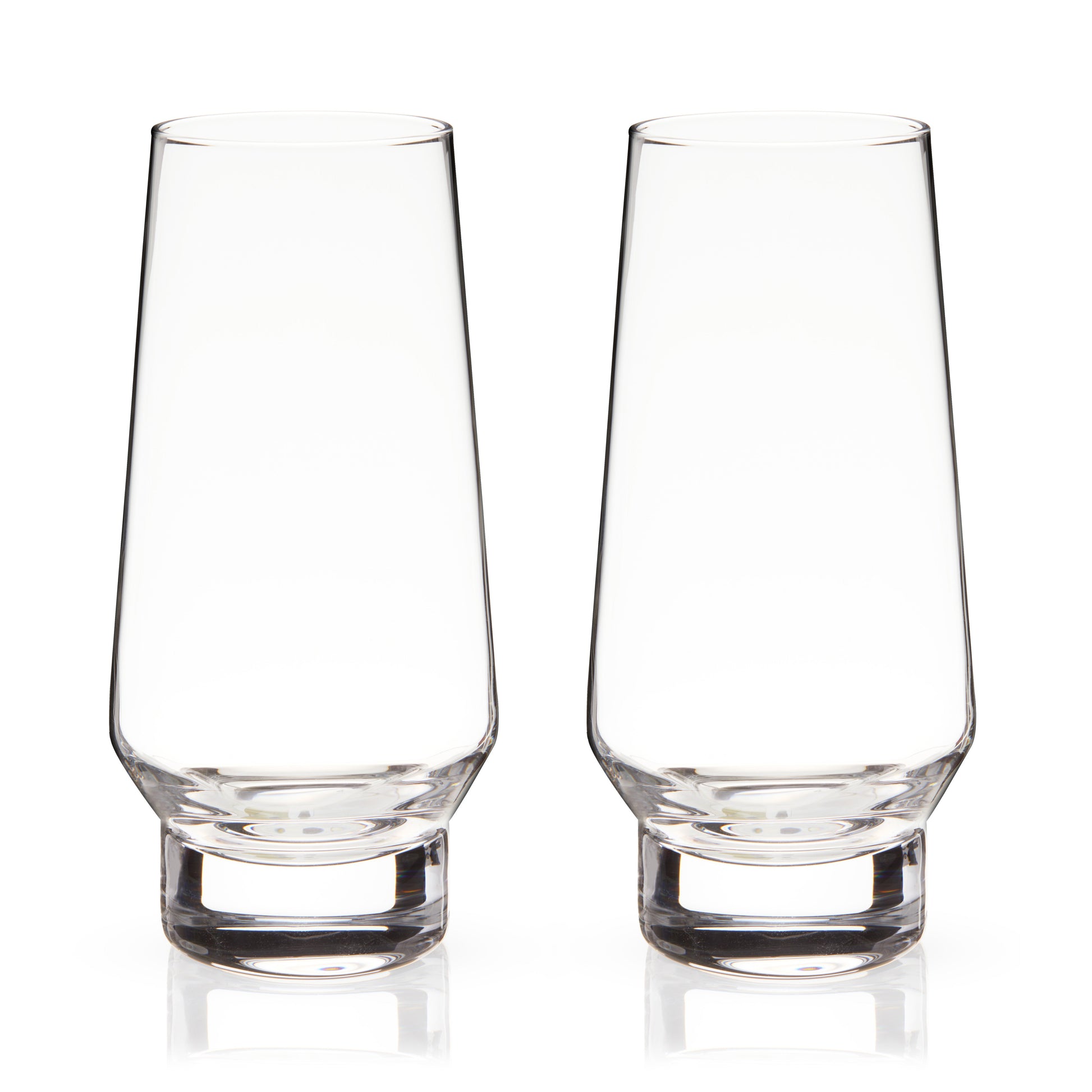 With a tapered rim, rounded silhouette and heavy base, these crystal champagne flutes have a modern look and substantial stemless base, ideal for your favorite prosecco, a simple mimosa, or elaborate Champagne cocktails.
