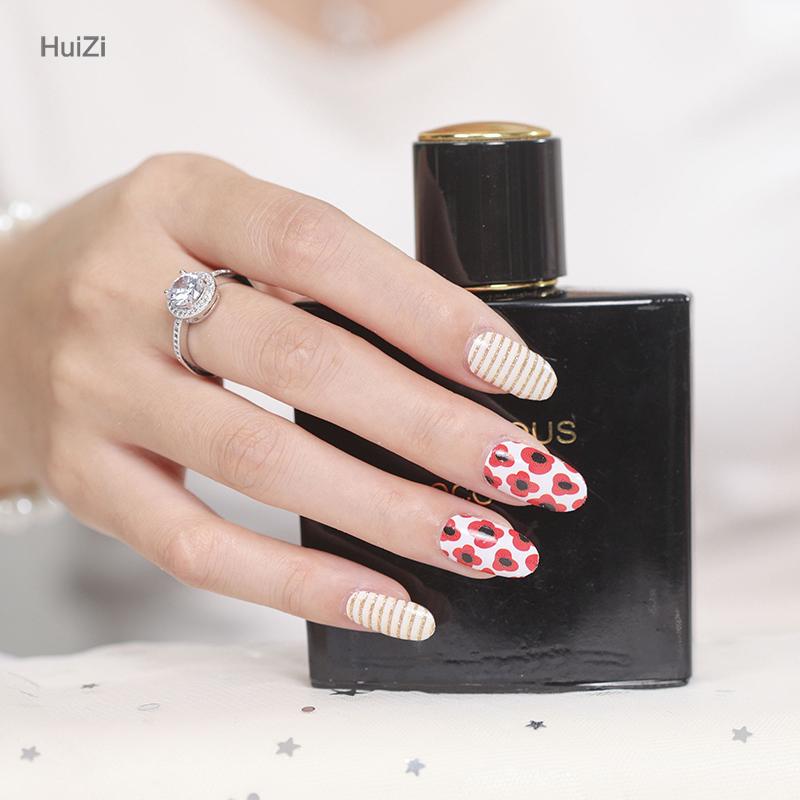 Real Nail Polish Stickers! Our real nail polish stickers come in a 16 nail set. Apply the real nail polish stickers and file the excess. Each set lasts about 10-14 days.