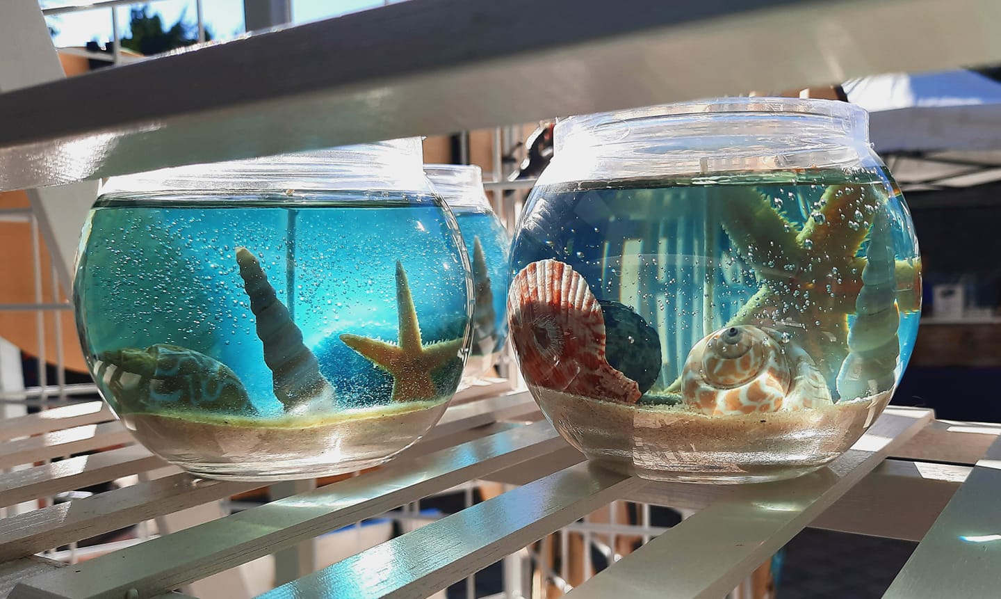 I hand-pick and place all the shells, sea stars, sand dollars, etc.
