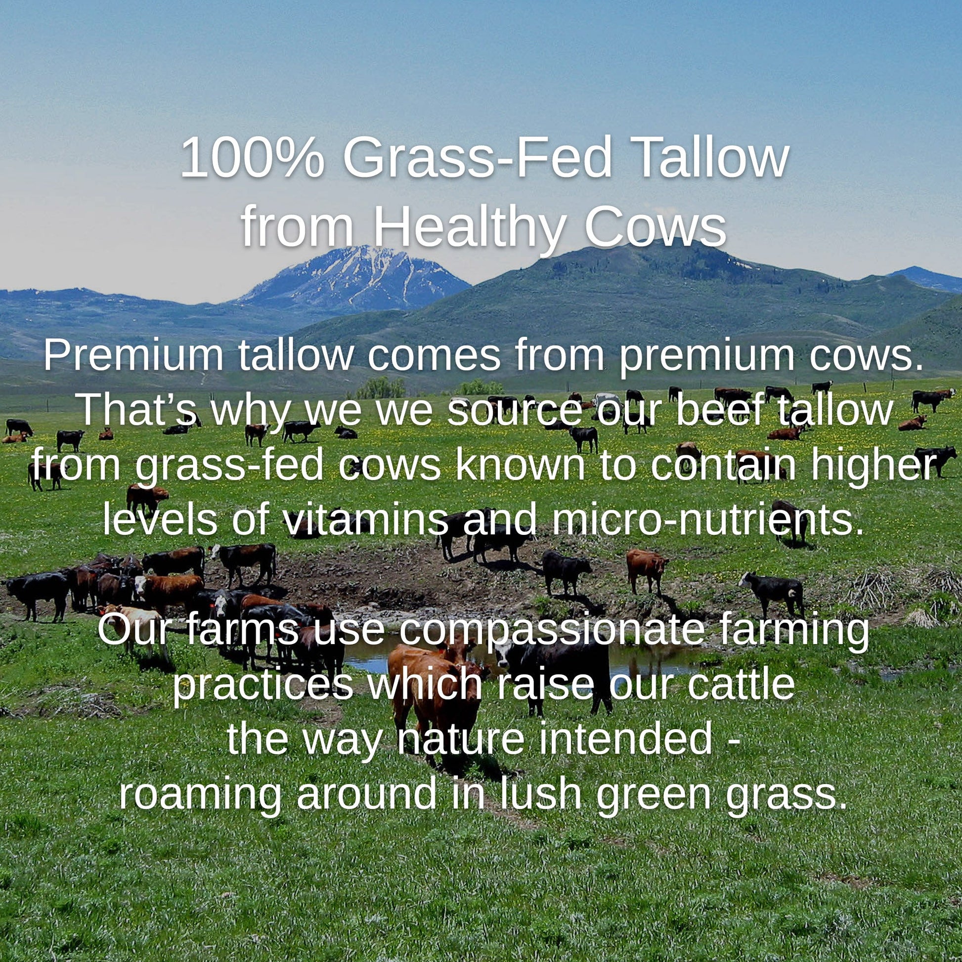 100% Grass-Fed & Finished Beef Tallow sourced from small family farms is packed with Vitamins A, K, D, E, choline and powerful antioxidants, all in their natural state
