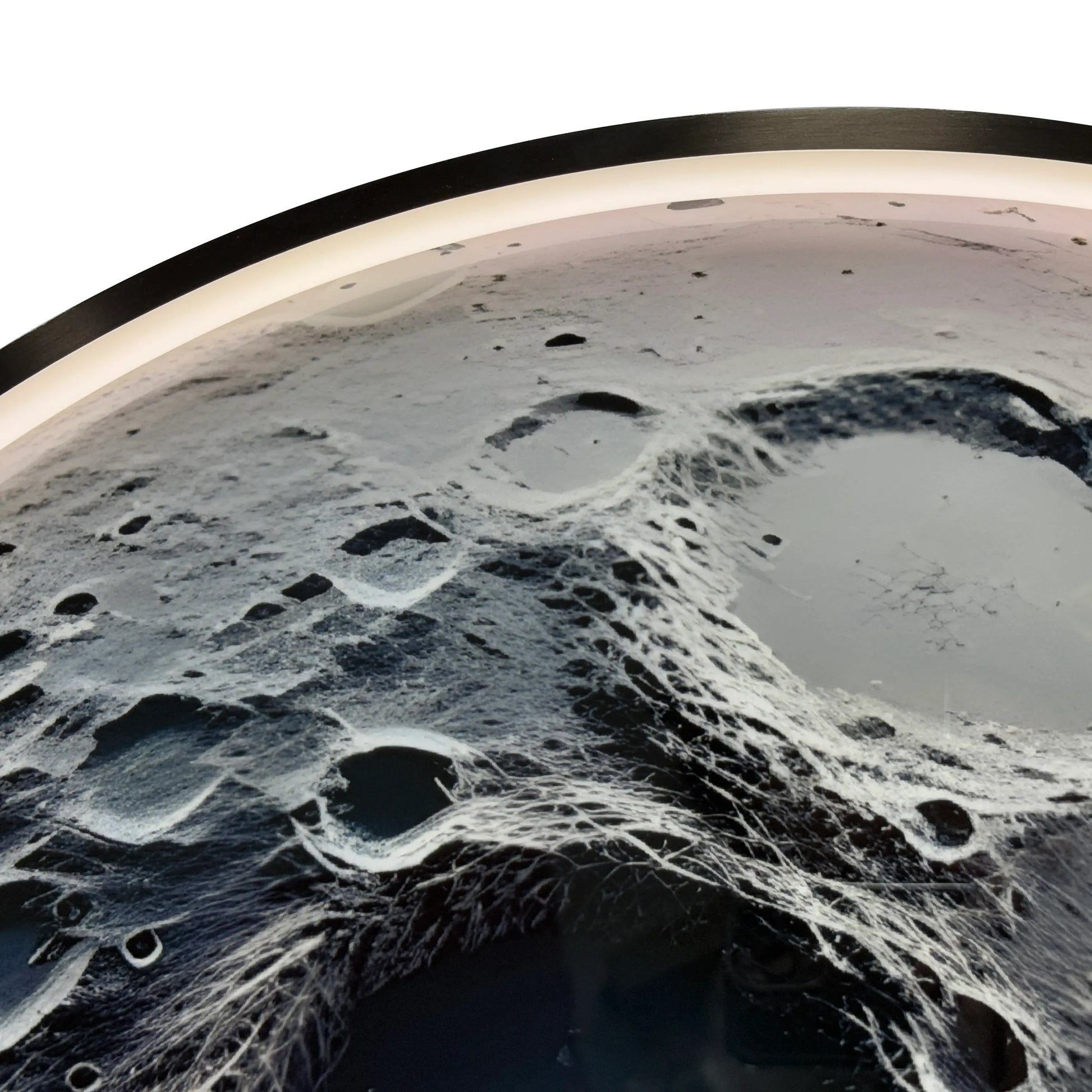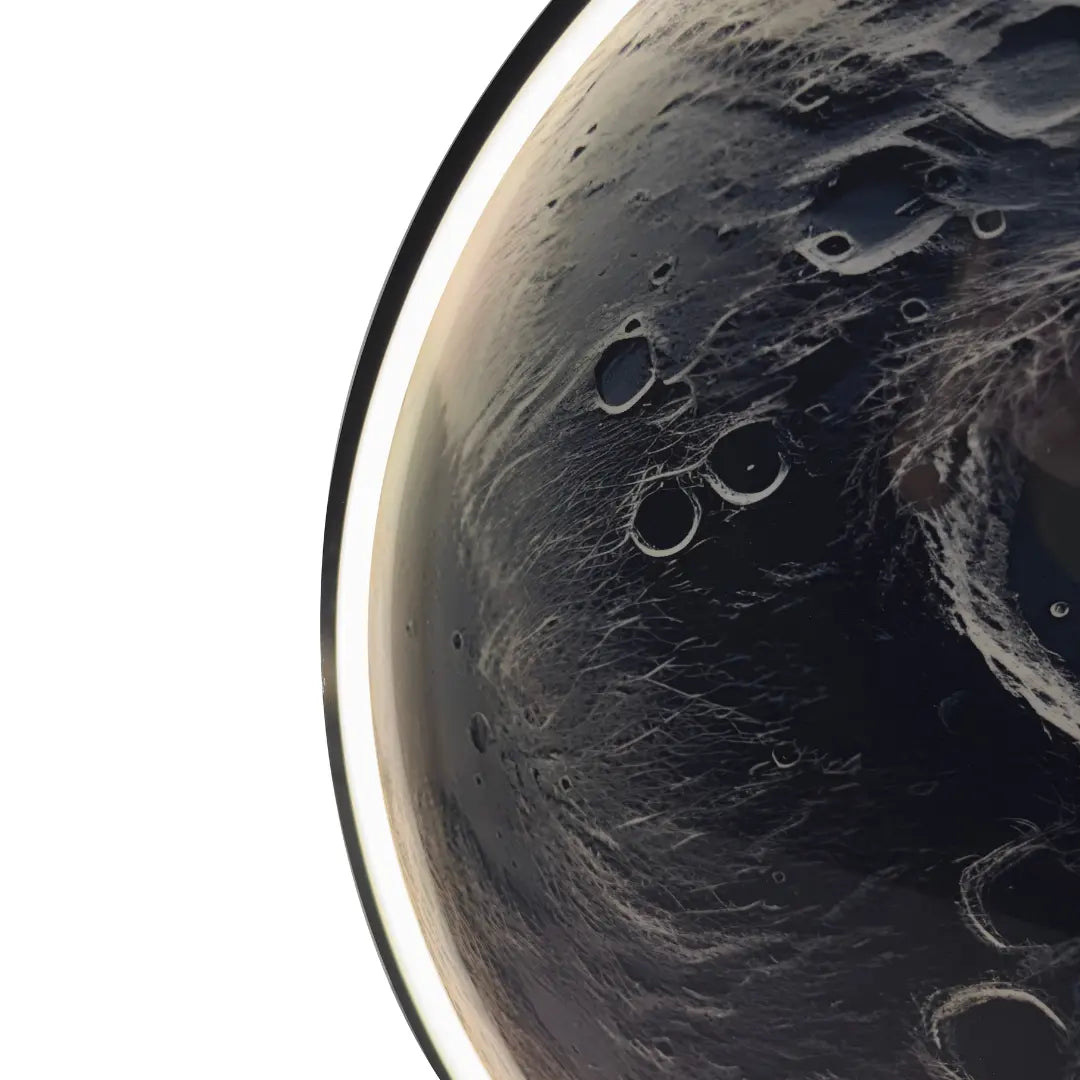 Silent Moon is a luminous wall sculpture that captures the raw, cratered surface of the moon in vivid detail. Surrounded by a soft LED halo, the piece glows with the quiet stillness of space—mysterious, vast, and eternal. A perfect balance of science and art, it brings a celestial calm to any interior.