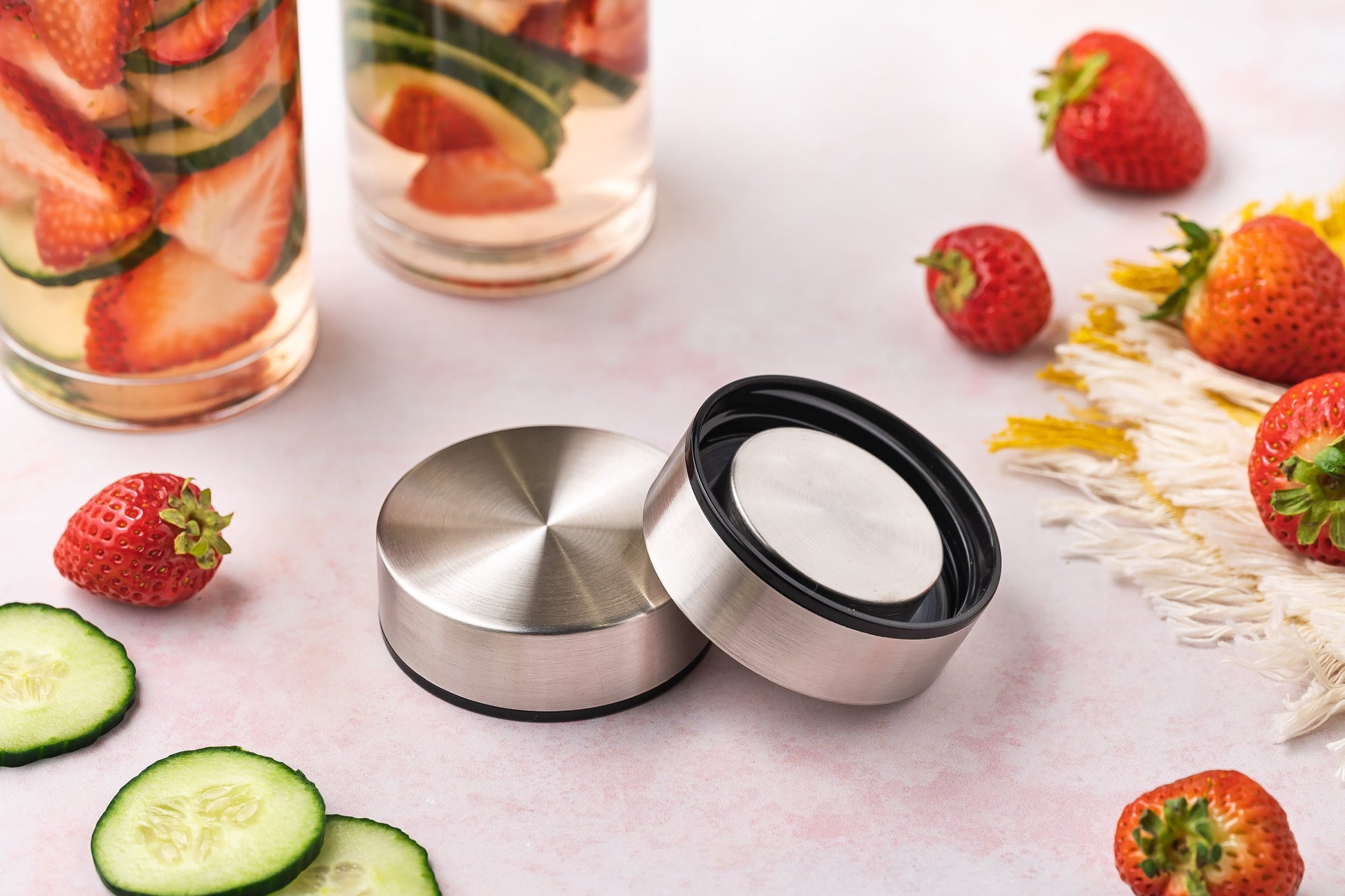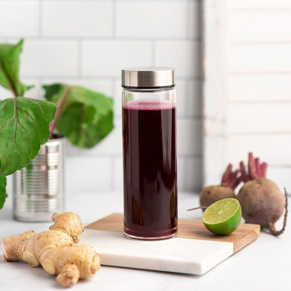 LEAK PROOF & AIRTIGHT STAINLESS STEEL LIDS … Throw this glass water bottle in your bag and get a healthy start to your day with a juice, smoothie, or infused water.  It’s completely airtight to keep your beverage fresh without any worry of spills.