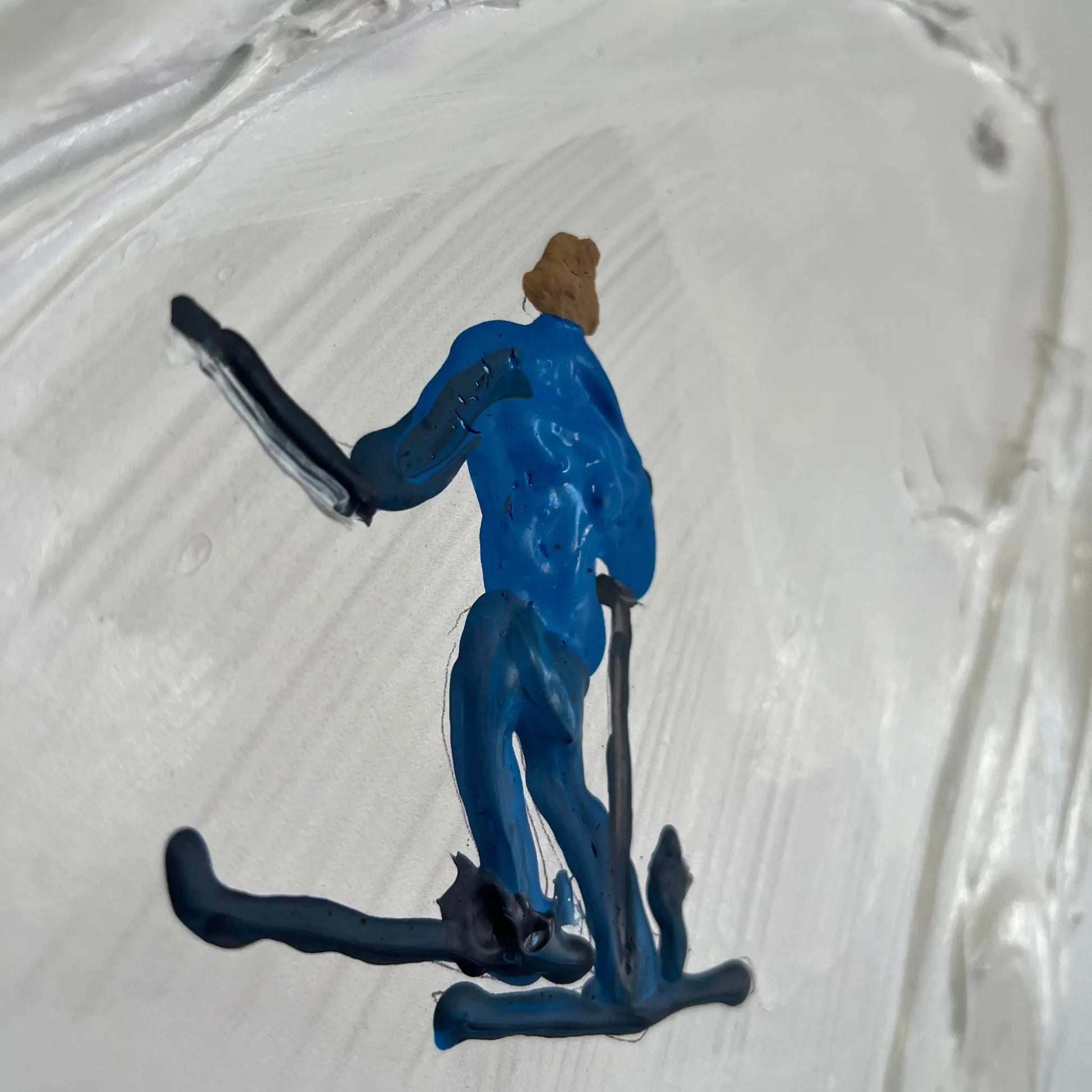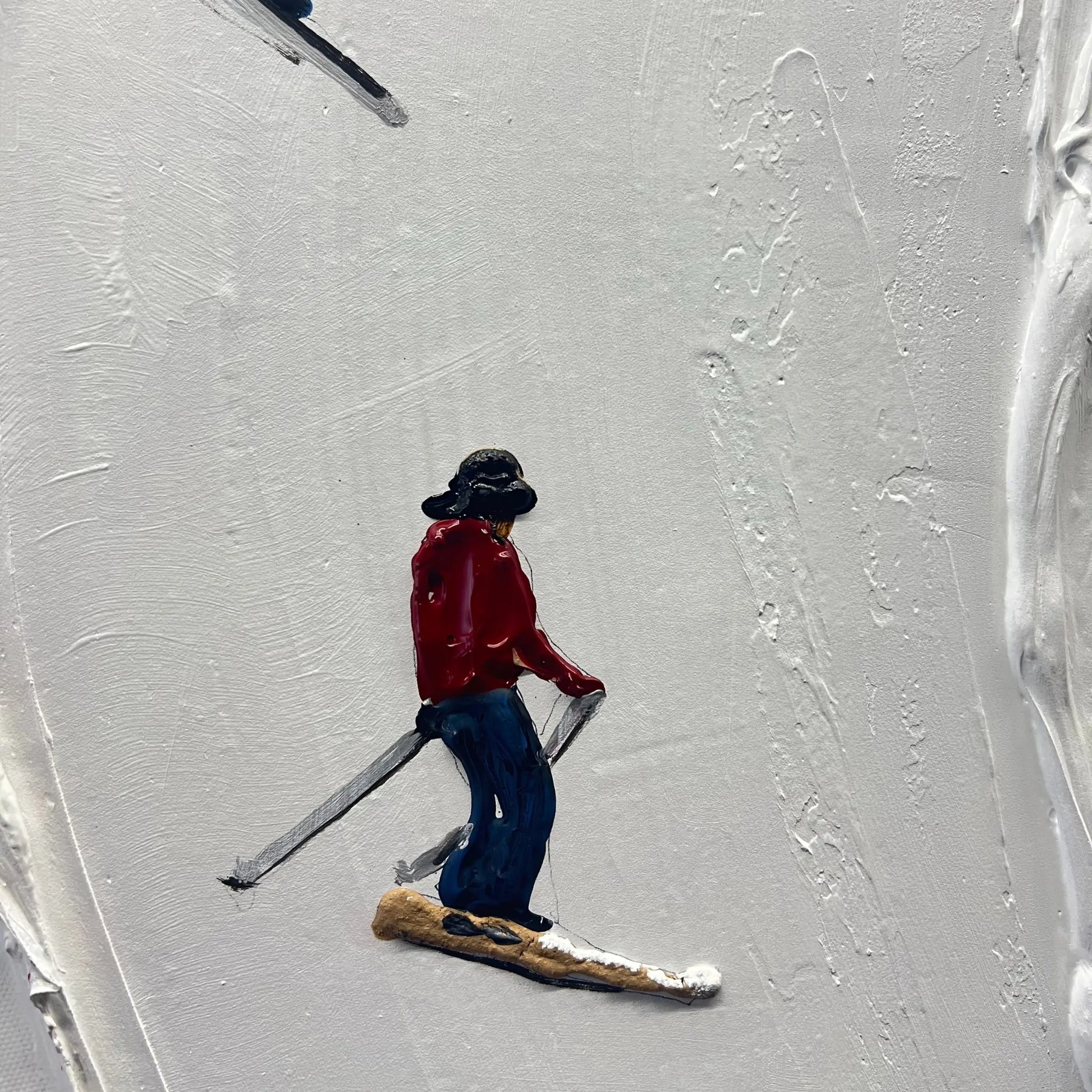 - Materials: Canvas, sandstone textured oil paints, paint brush, acrylic skier characters