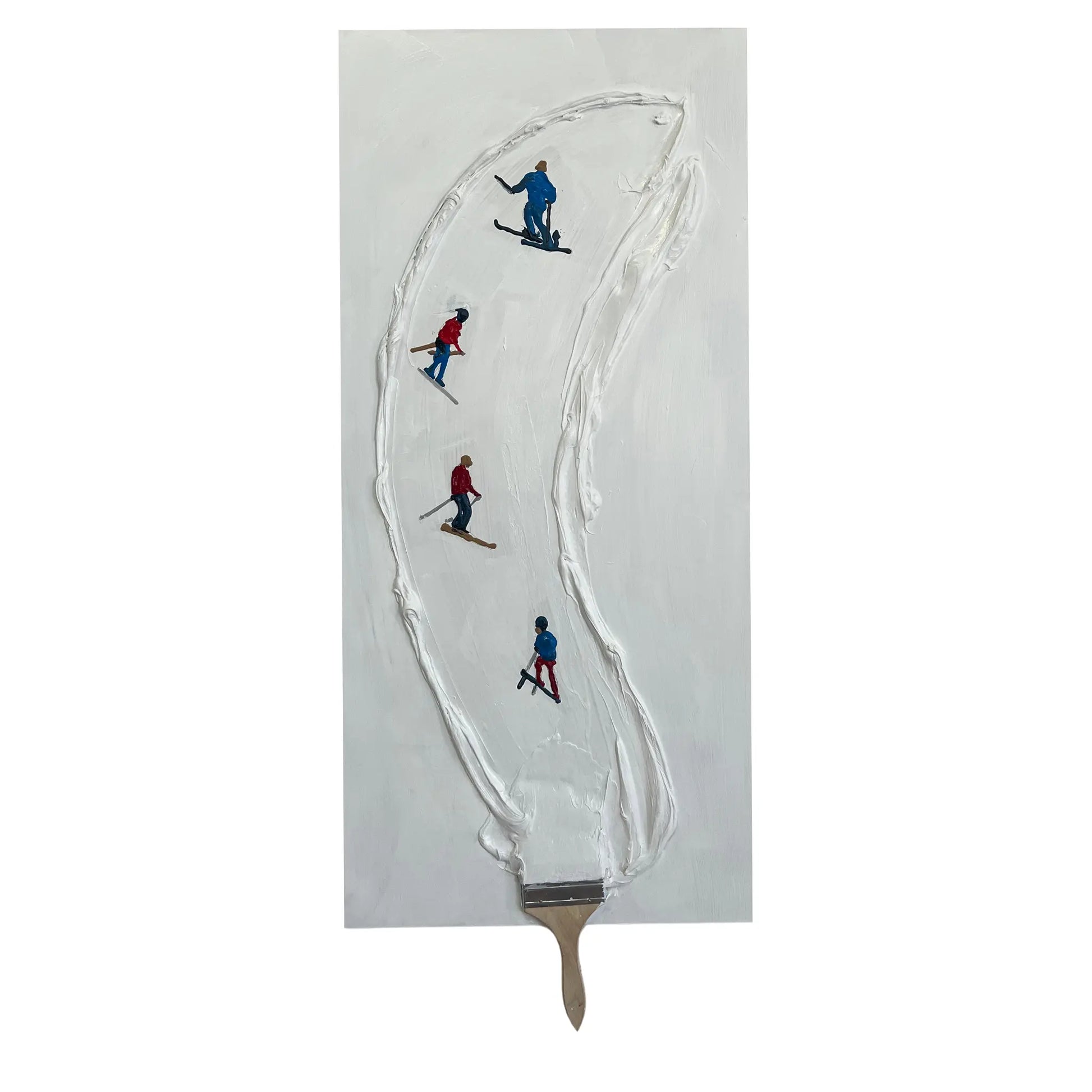 Introducing "Snowy Strokes: Oil Painting on Canvas with Ski Slope and Brush Detail" - a captivating oil painting that intricately captures the essence of a snowy ski slope. Featuring a striking white stroke resembling the snow, with actual paintbrush affixed to the canvas, this artwork brings the magic of winter sports to life. As skiers navigate down the slope towards the brush, a sense of adventure and motion is evoked, inviting viewers to immerse themselves in the thrill of the descent. With its meticulous attention to detail and unique blend of artistic elements, "Snowy Strokes" becomes more than just a painting; it becomes a journey through the snowy mountainside. Elevate your home decor with the enchanting allure of "Snowy Strokes" and let its wintery charm transform your surroundings into a picturesque winter wonderland.