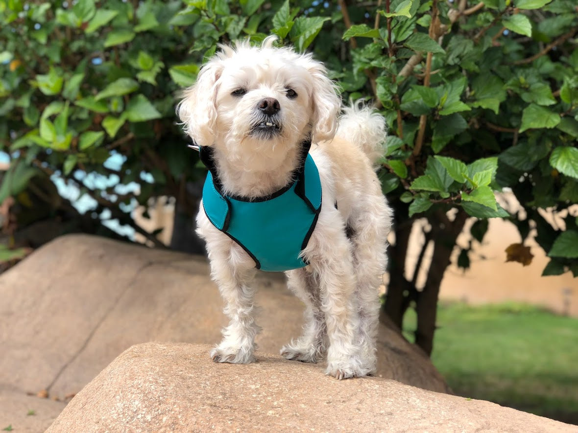 Measure the circumference of your dog's and neck and chest (in inches) and then choose the correct size harness from the table below. Make sure both of your measurements fall within the given range. If your purchasing as a gift we do offer gift cards that can help keep your secret.