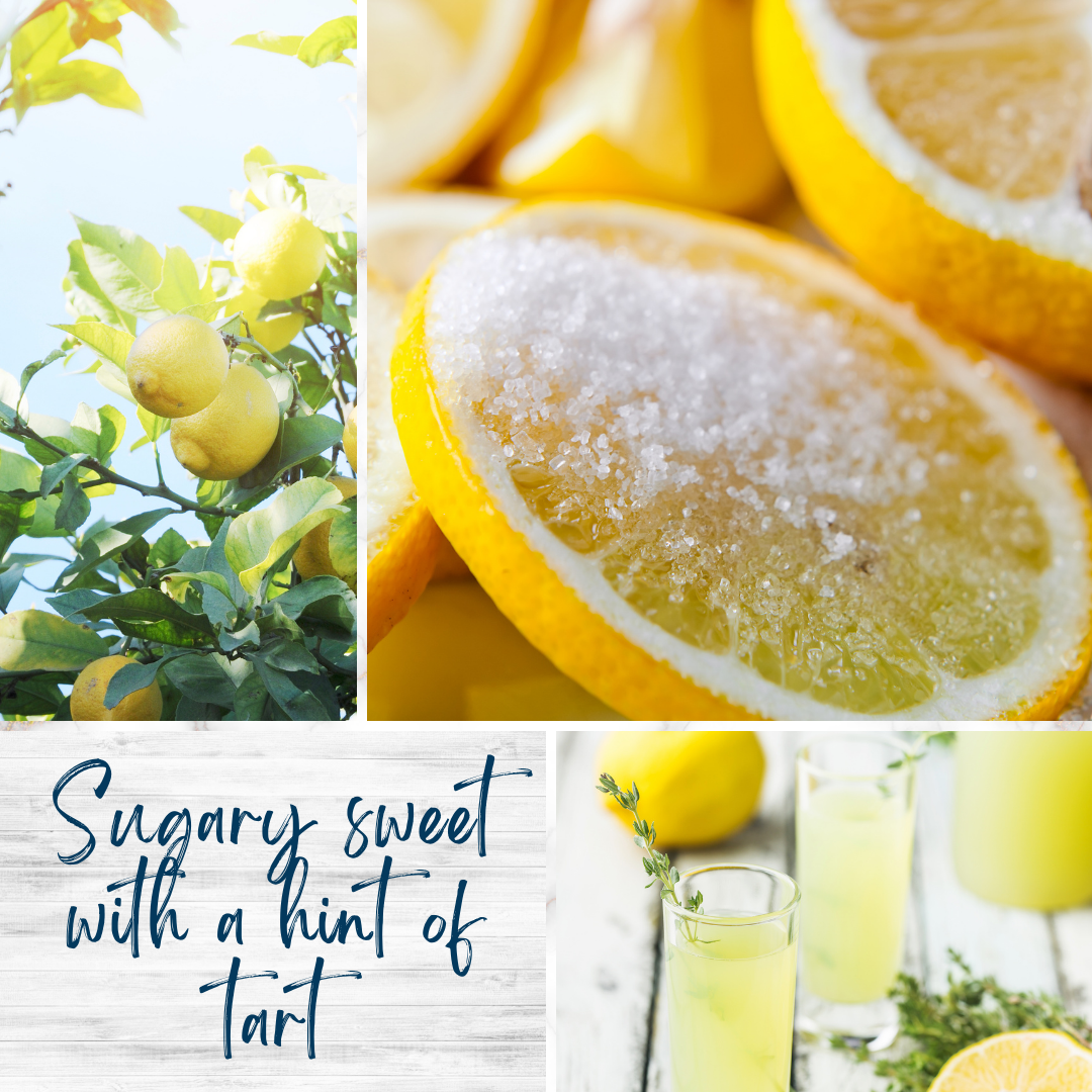 Fresh, vibrant lemon aroma reminiscent of a bright sunny day amongst wild lemon groves. Sugary sweet with a hint of tart. Infused with lemongrass and lemon essential oils. Citrus and gourmand notes.