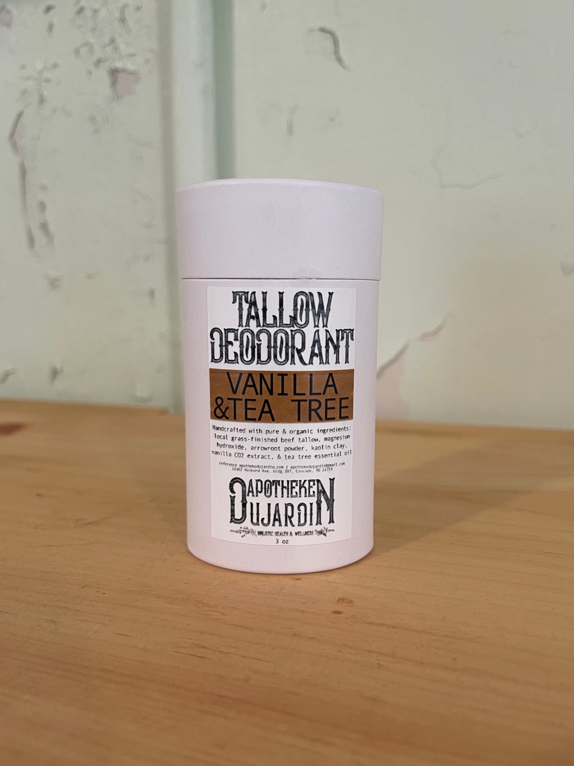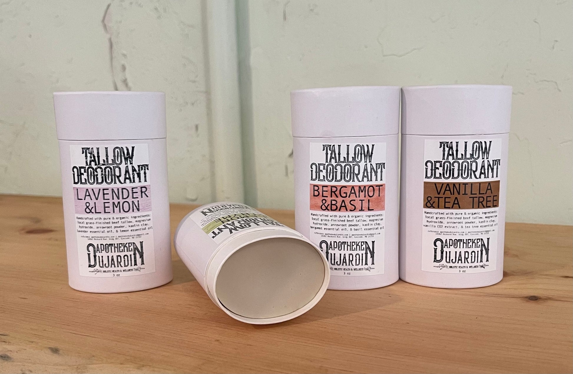 Nourish your pits and other stinky bits with this incredible tallow-based deodorant! Plastic free, no toxins, no baking soda, no aluminum, no chemicals, no nonsense. It has a smooth glide and isn't sticky or chalky like many "natural" deodorants. It is also very moisturizing without being greasy and won’t stain your clothes! Plus it actually works on even the stinkiest of pits!