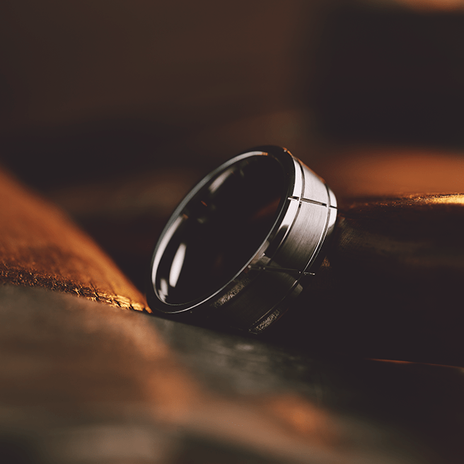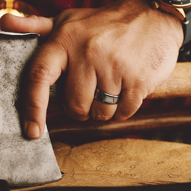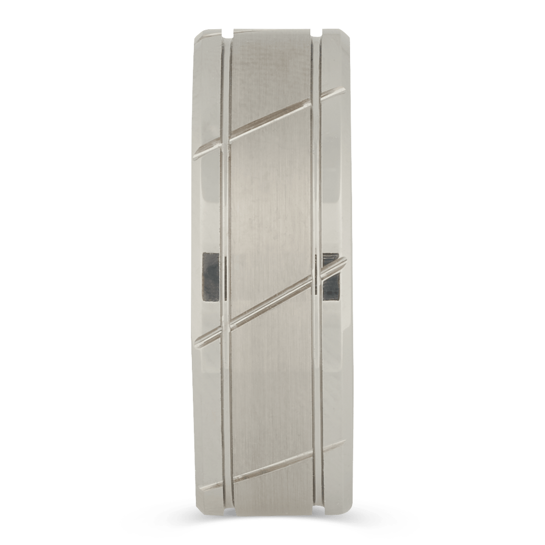 - Flat Beveled Edge Design in Comfort Fit with Satin Finish
