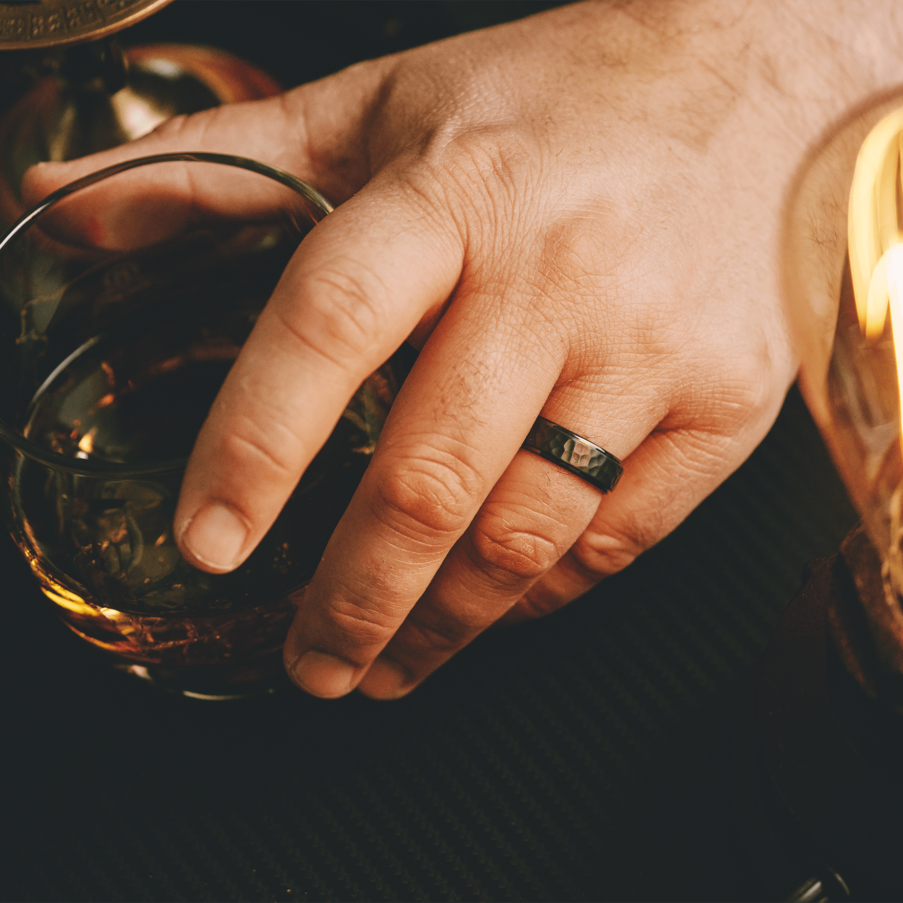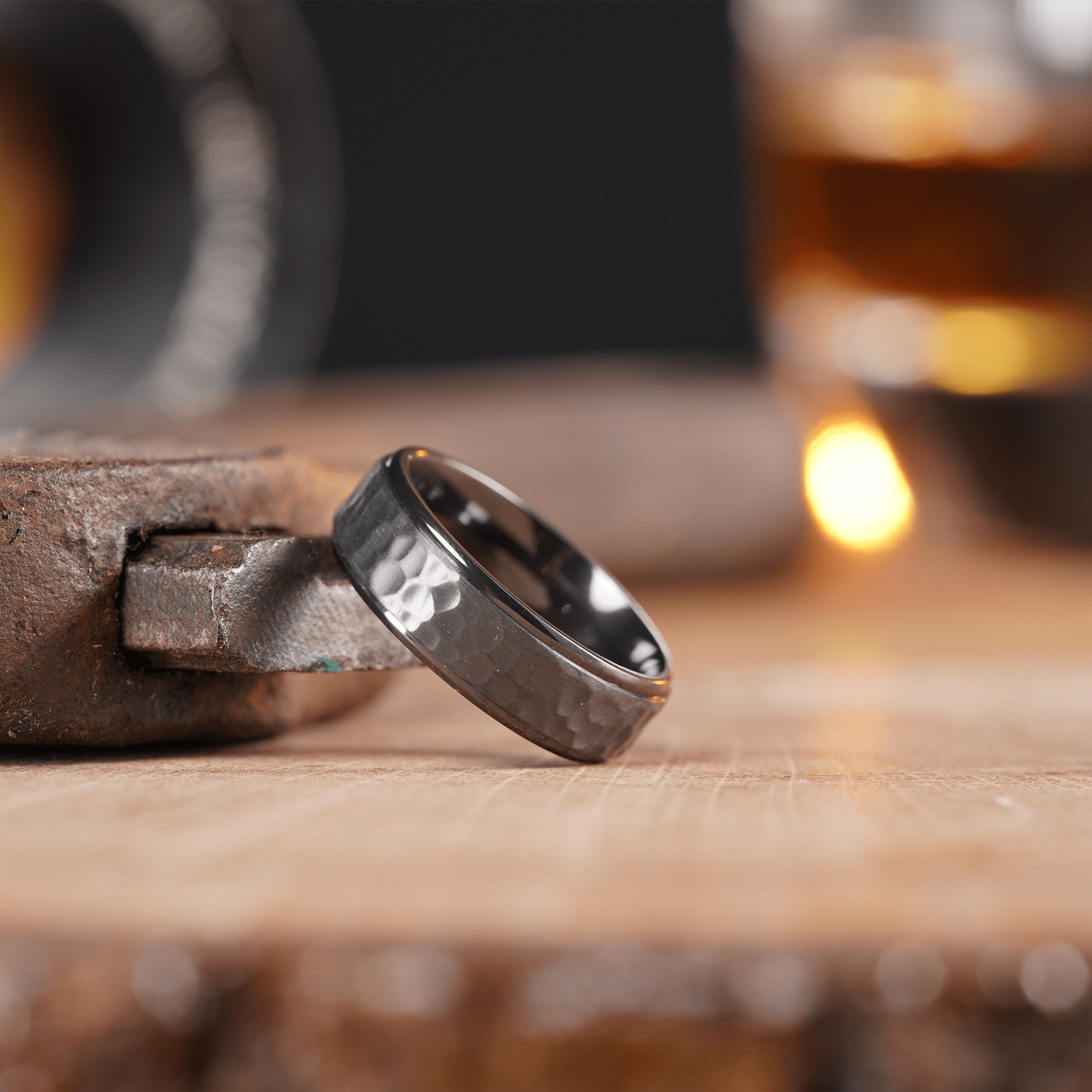 • Flat Stepped Edge Design in Comfort Fit with Hammer Finish