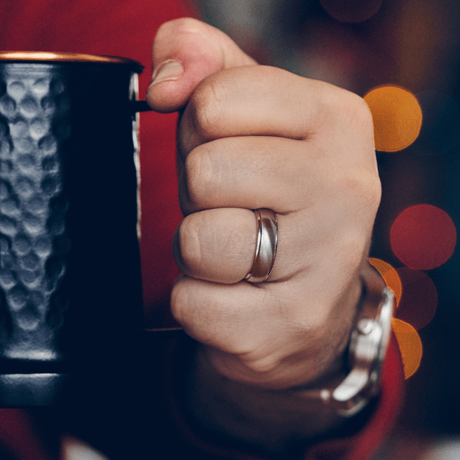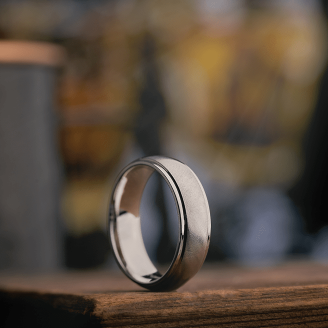 - Domed Stepped Edge Design in Comfort Fit with Angled Satin Finish