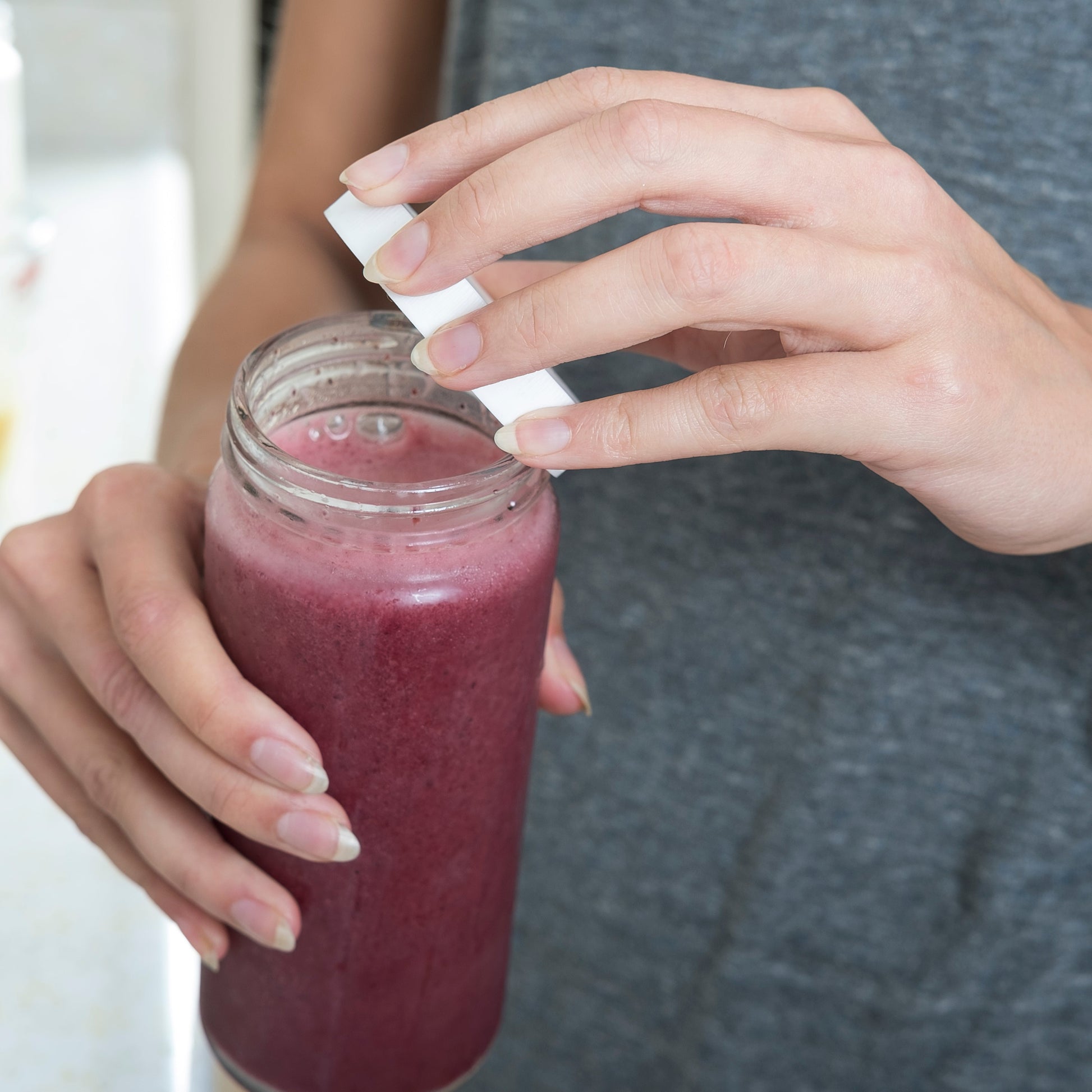 - Set of 3 white silicone straw lids + light grey straws for turning your bottles into a tumbler