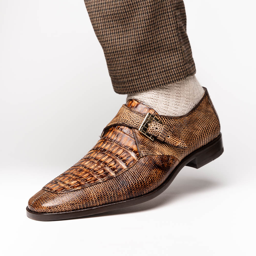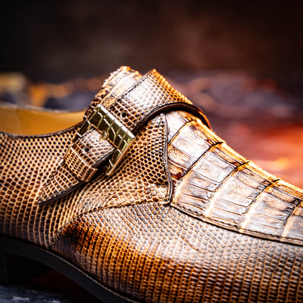 The TOLUCA is our genuine crocodile and lizard dress monk strap featuring chrome scale textured buckle, full leather outsoles, and a polished hand-finish. Dress these up with your favorite jeans or slacks for a stunning look.