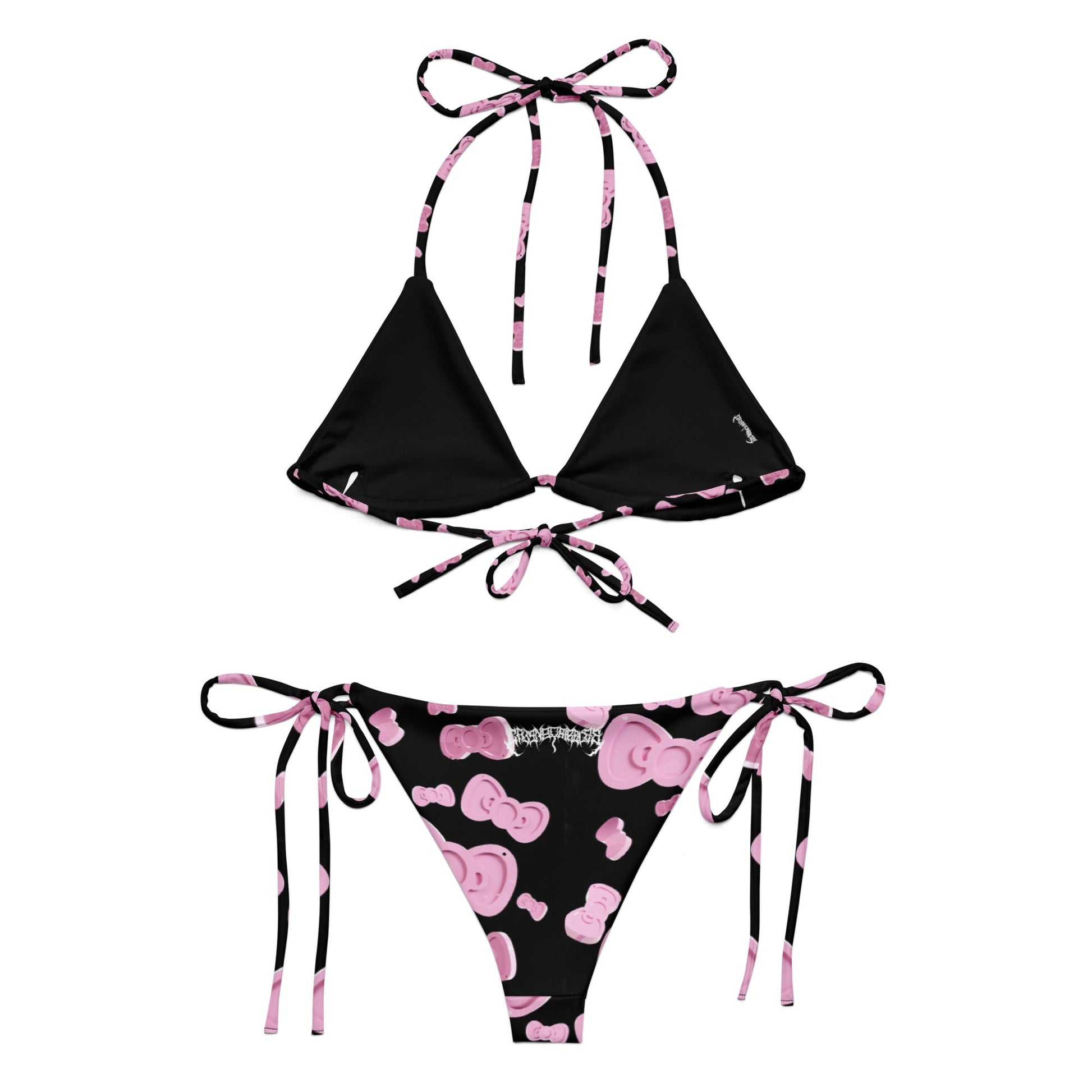 Step into summer in style with the π―ππ π«πππ π΅πΎππΎππΎ, your go-to for playful yet sophisticated swimwear. Adorned with a chic all-over pink bow print and a βFor Youβ script design, this bikini blends flirty details with eco-conscious design. Made from soft, recycled polyester and double-layered for comfort, this string bikini ensures the perfect fit with its adjustable ties. Whether youβre lounging on the sand or diving into the waves, the Too Purr Bikini brings effortless charm to every moment.