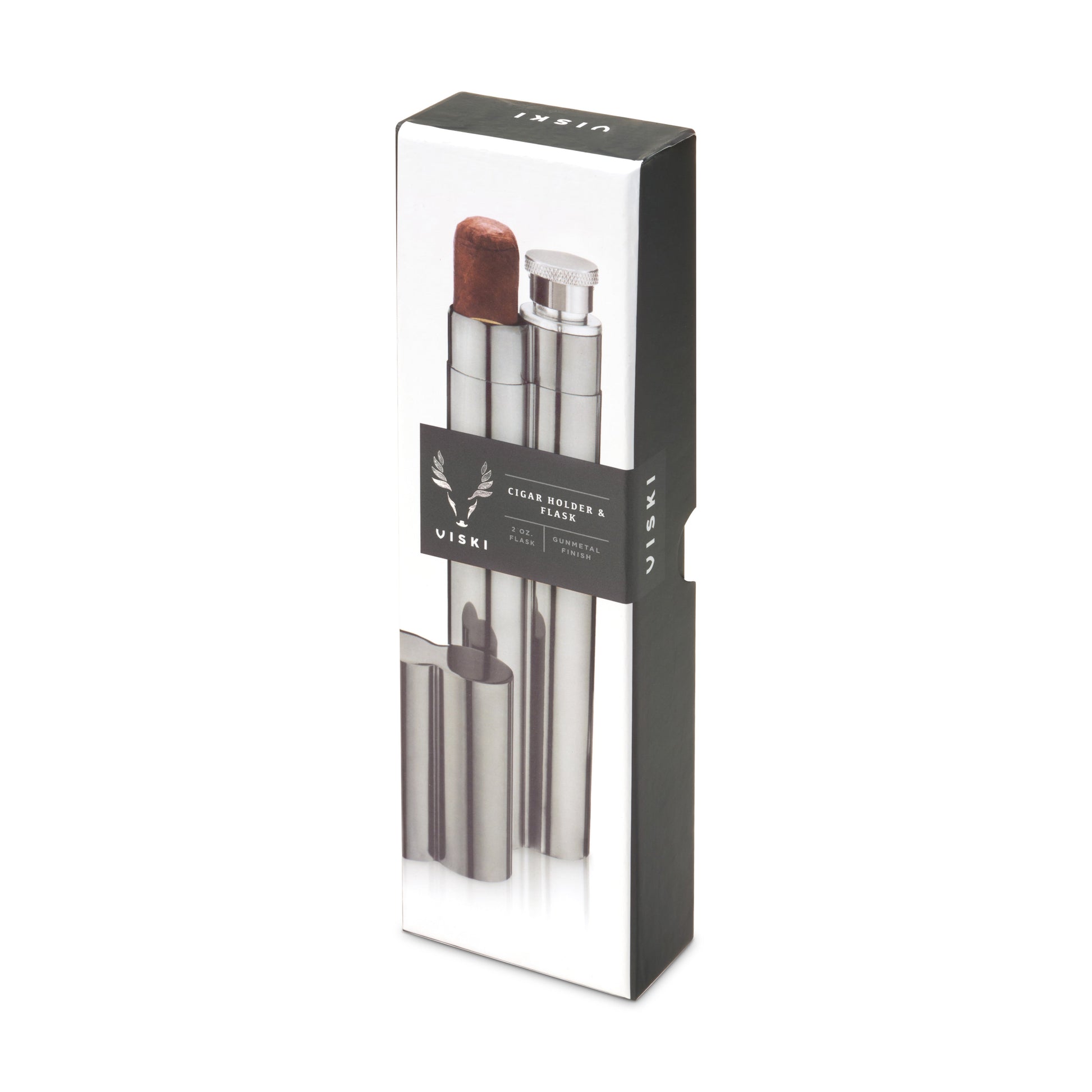 Slip something to sip on into a refined stainless steel case, with room for a choice 52-gauge cigar alongside the half-flask. Keep it Caribbean with rum and a Cuban cigar, or pair Amaro Fernet Branca with a Toscano for an Italian after-dinner indulgence.